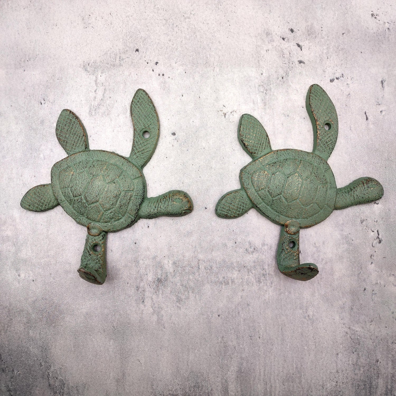 - Cast Iron Green Patina Sea Turtle Wall Hook