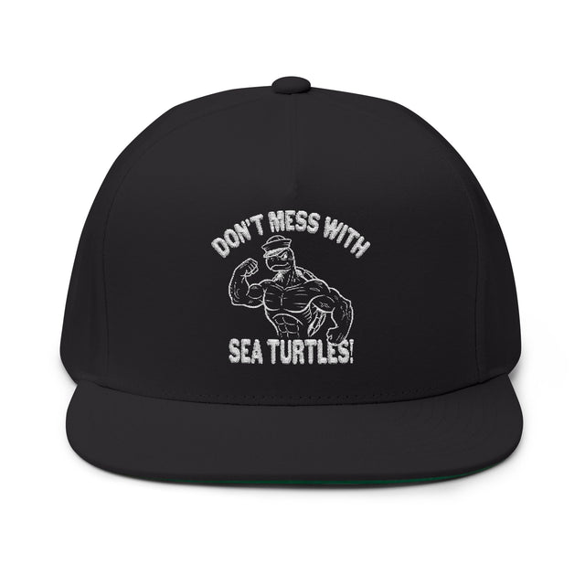 Don't Mess With Sea Turtles Embroidered Flat Bill Cap Stylish Beach Hat, Gift for Ocean Lovers, Summer Accessory, Outdoor Fashion