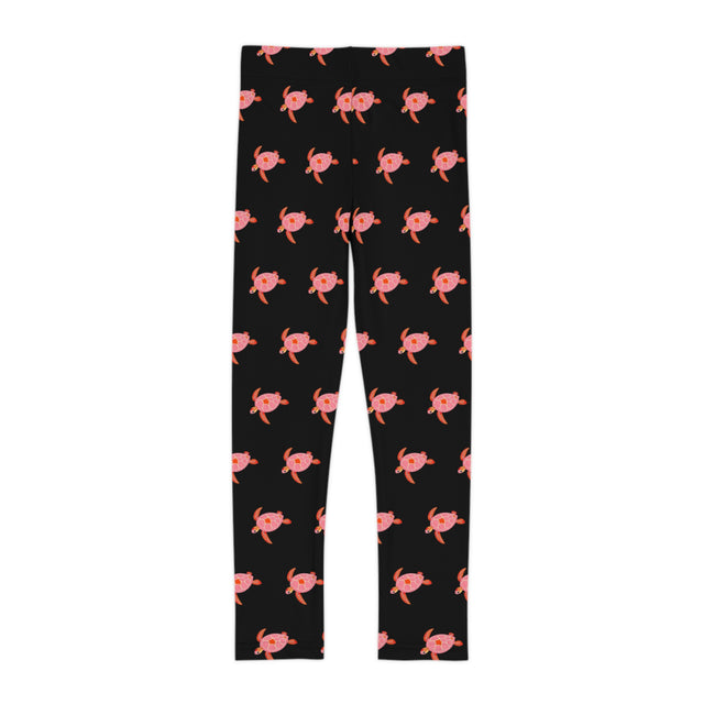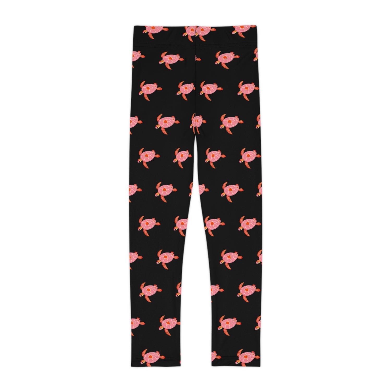 Kids Black and Pink Sea Turtle Leggings - Comfortable, Fun Clothing for Playtime, Gifts for Birthdays, Christmas, Everyday Wear, Toddler Fashion
