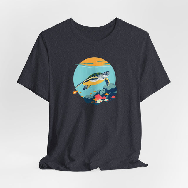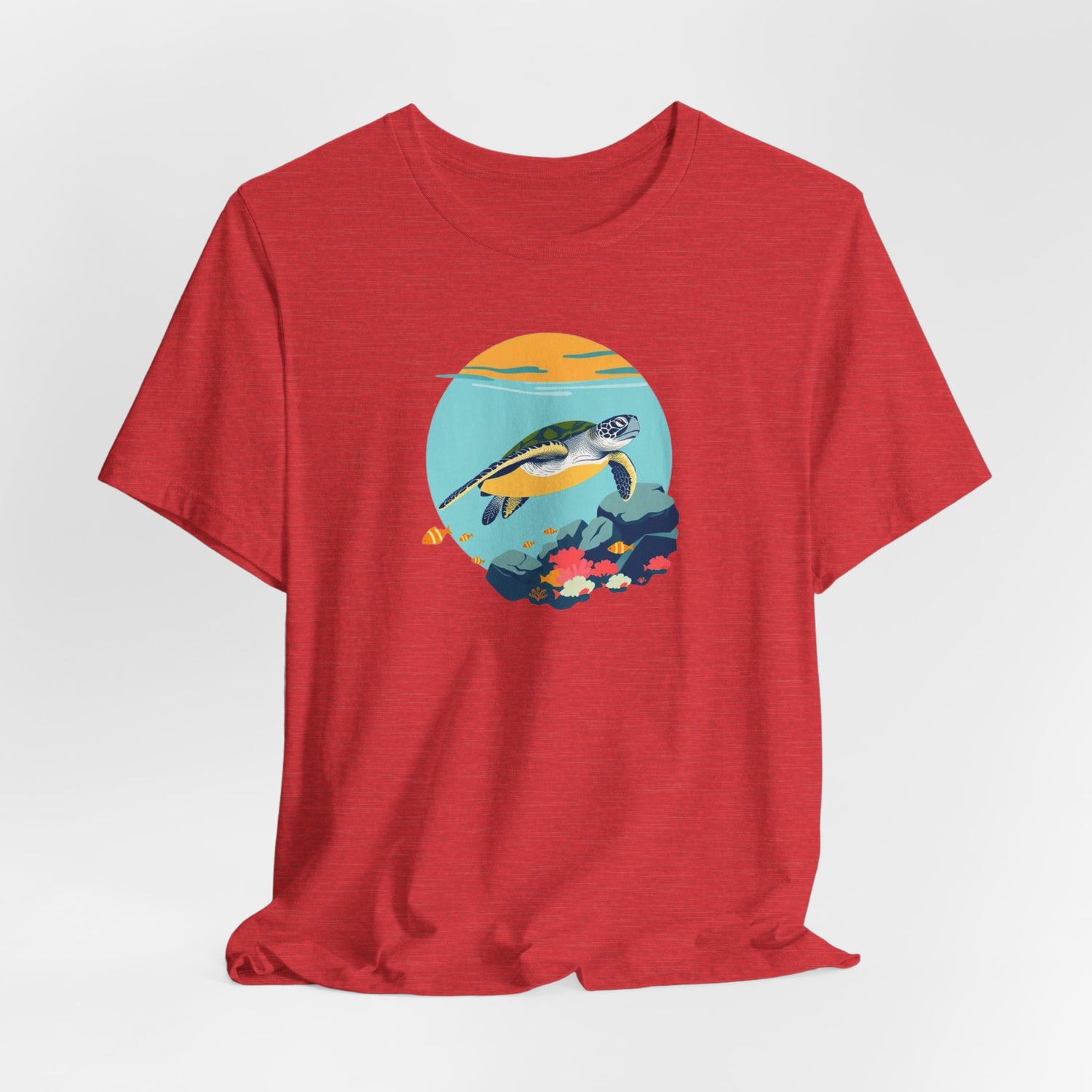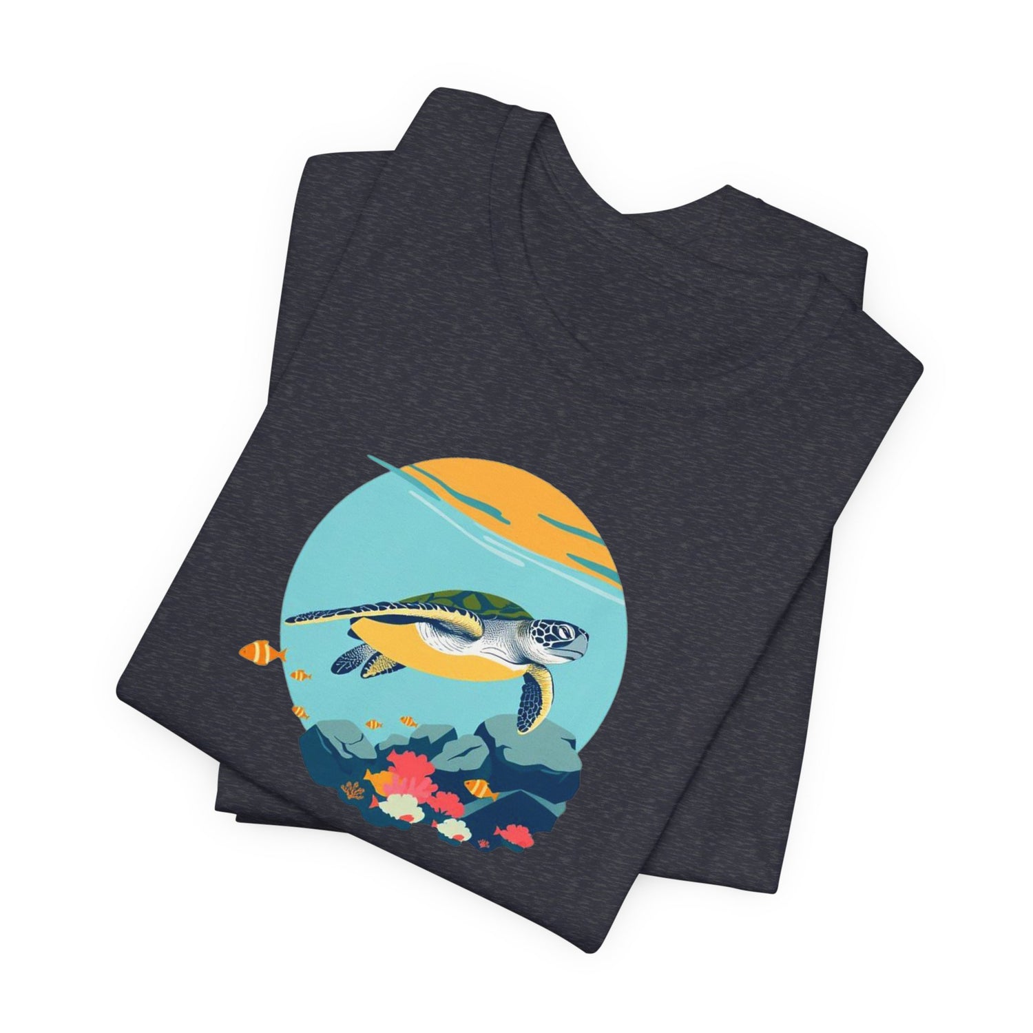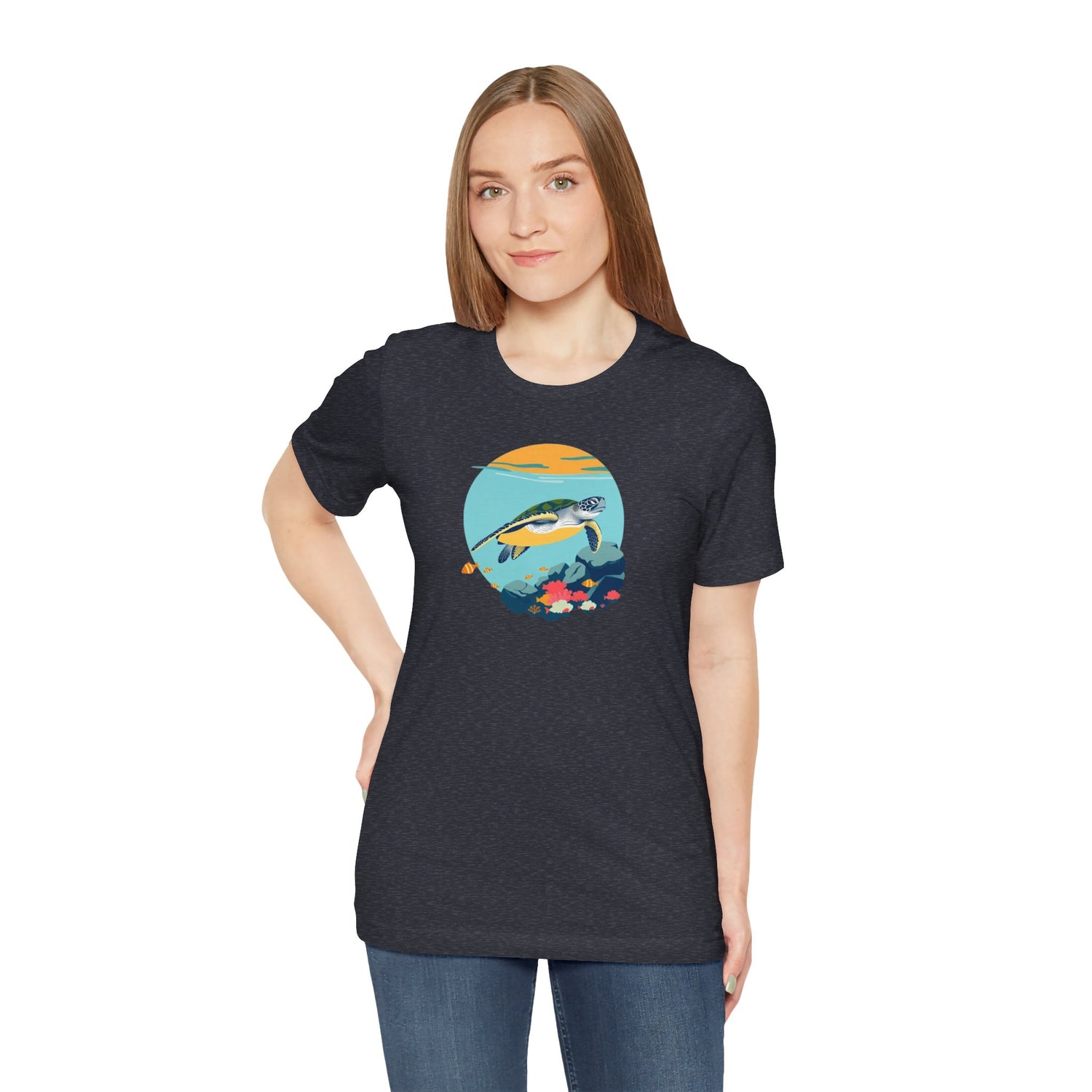 Sea Turtle At Sea Circle Design Unisex Jersey Short Sleeve Tee, Great Gift For Sea Turtle Lovers, Sea Turtle Shirt