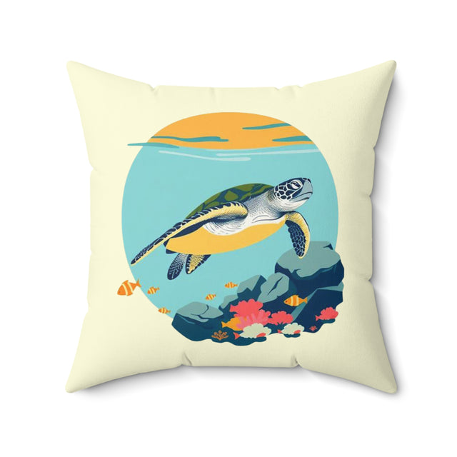 Swimming Sea Turtle Faux Suede Pillow, Coastal Home Decor, Boho Accent Cushion, Beach House Accent, Sea Turtle Decor