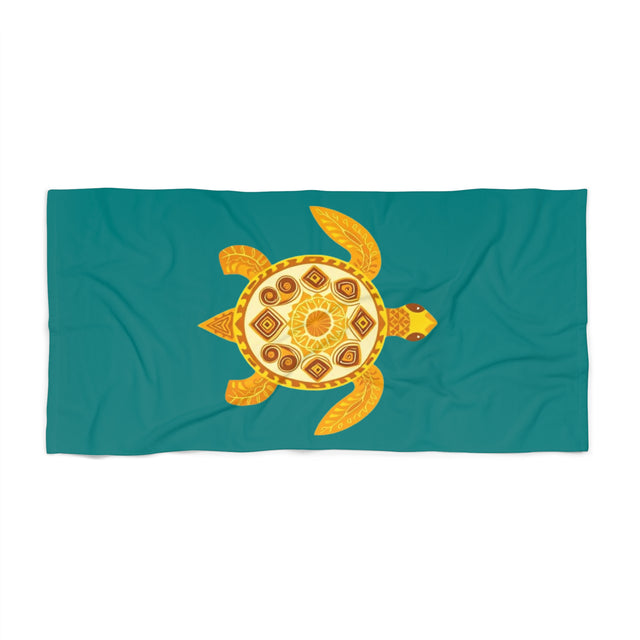 Gold and Teal Sea Turtle Beach Towel - Vibrant Summer, Pool Party Accessory, Eco-Friendly, Perfect for Beach Days, Gift for Ocean Lovers