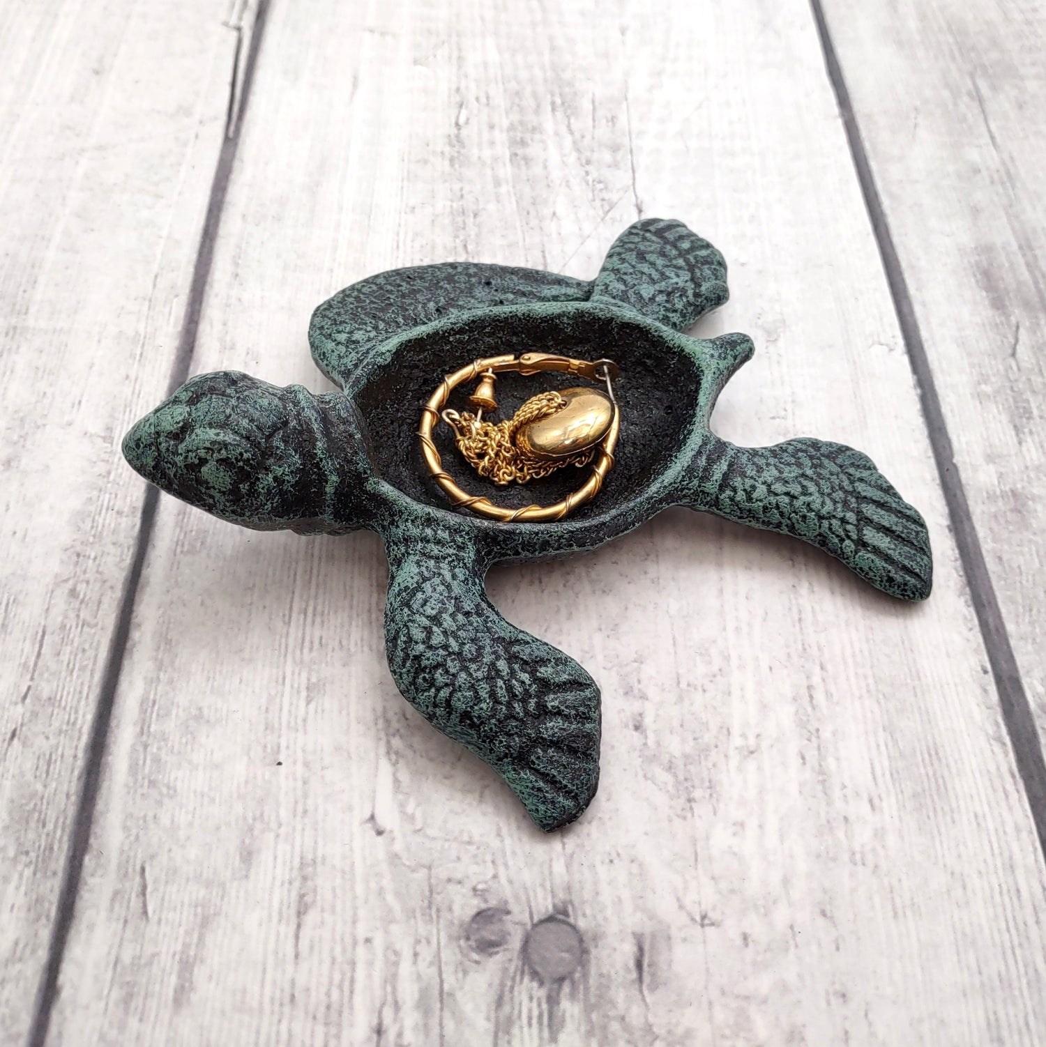 Green Sea Turtle Key Box With Lid Metal (1 key box approx. 5+ inches) Dark Aged Green Cast Iron Sea Turtle Box for keys trinkets & gifting! is backordered and will ship as soon as it is back in stock.