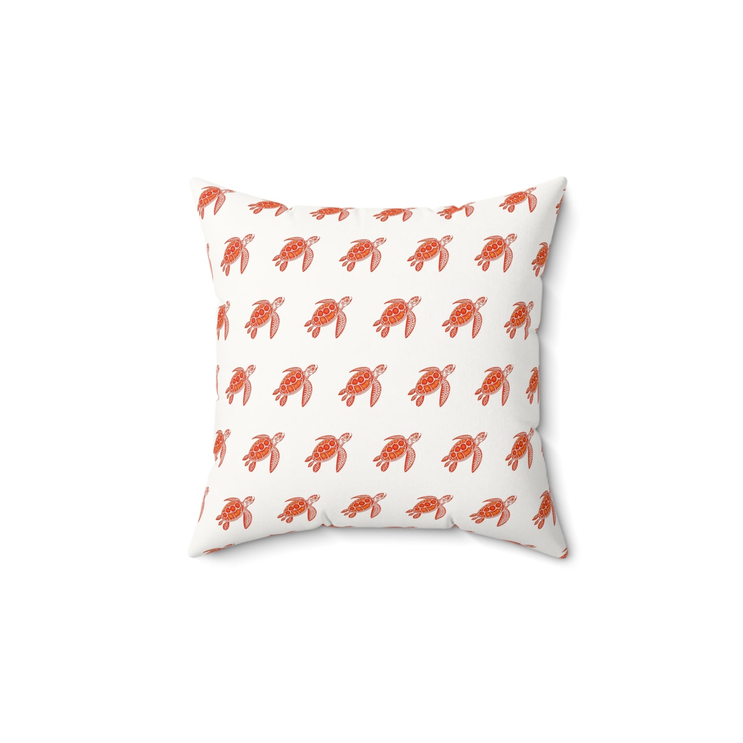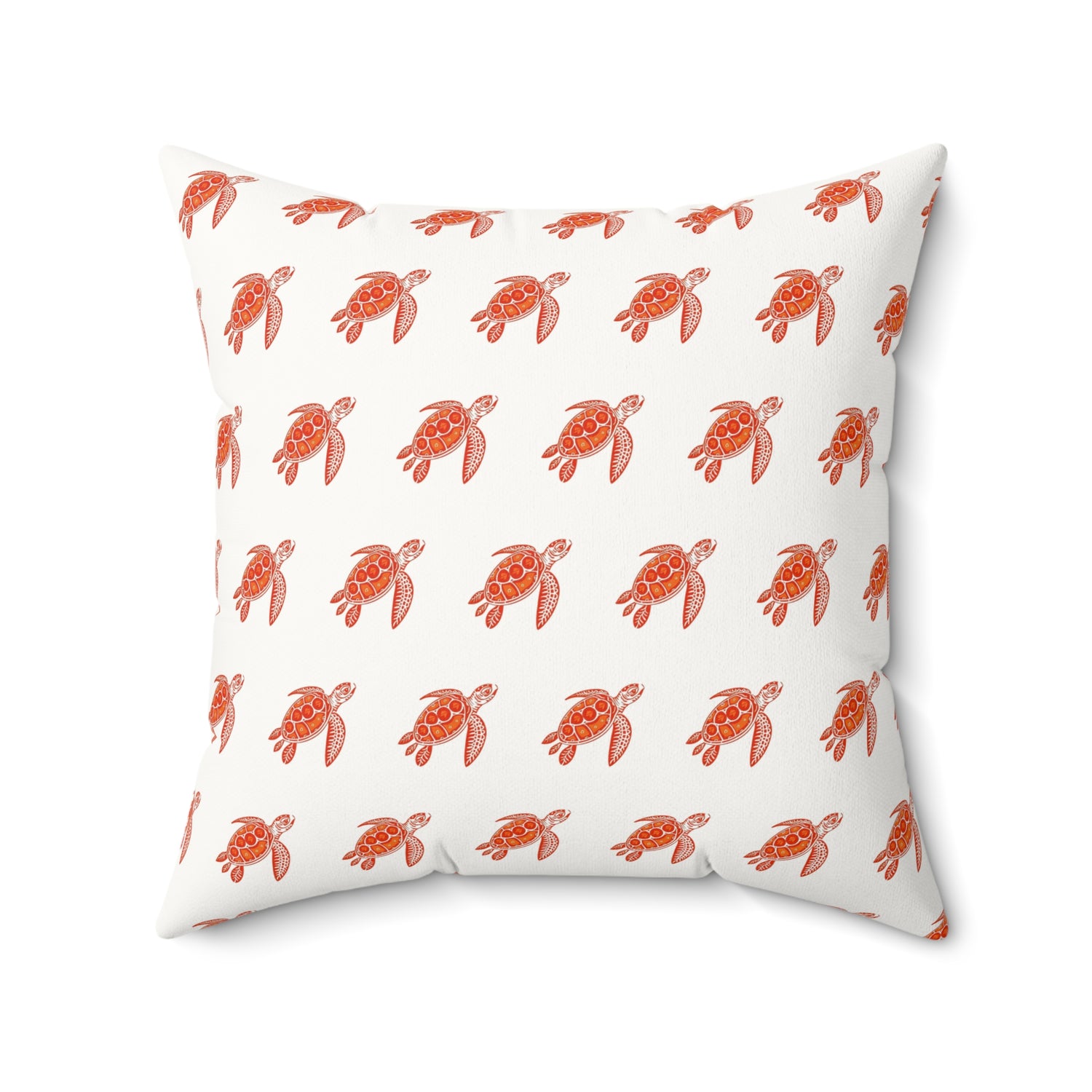 Red Turtle Pattern Faux Suede Pillow, Coastal Home Decor, Boho Accent Cushion, Beach House Accent, Sea Turtle Decor