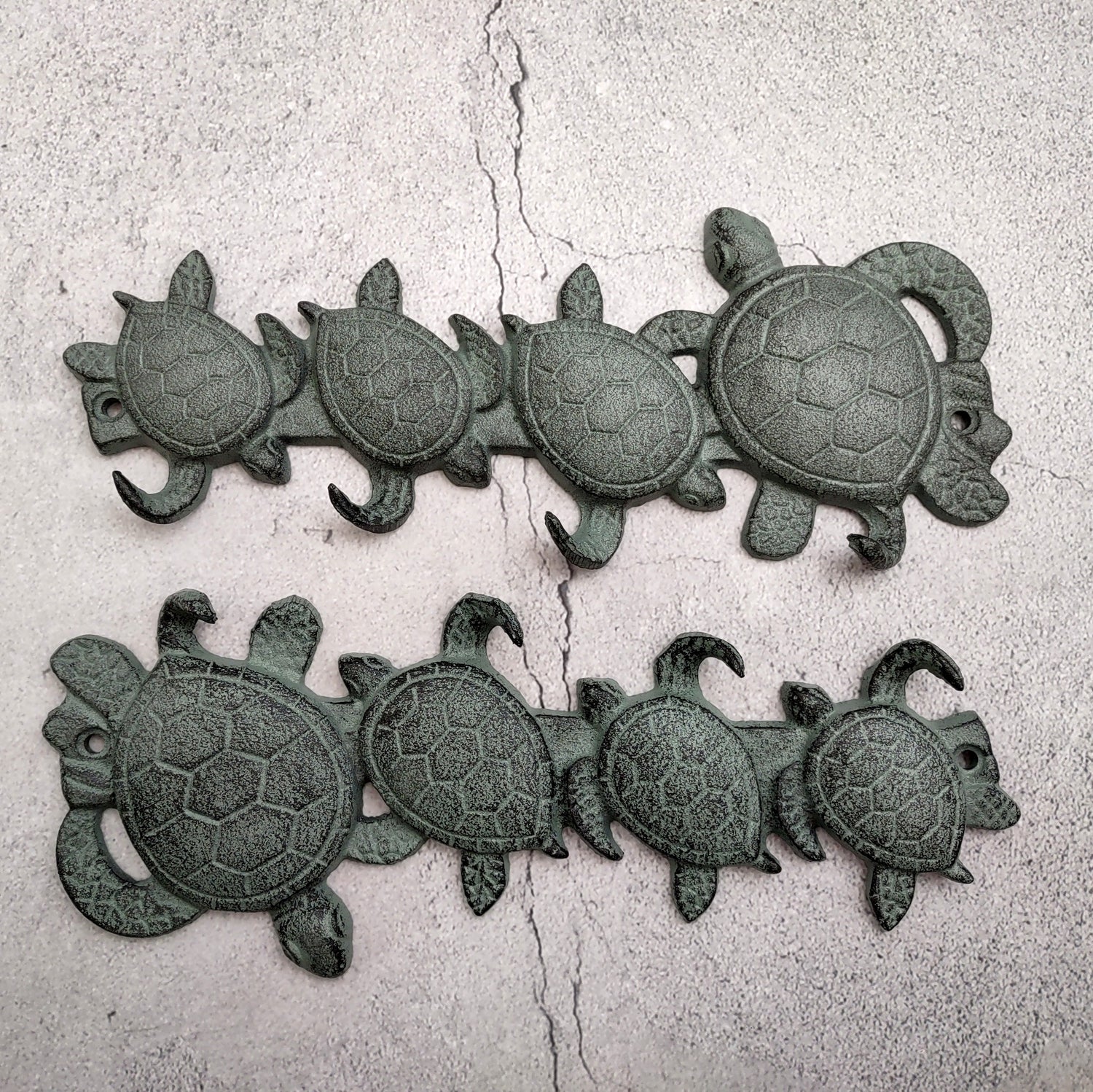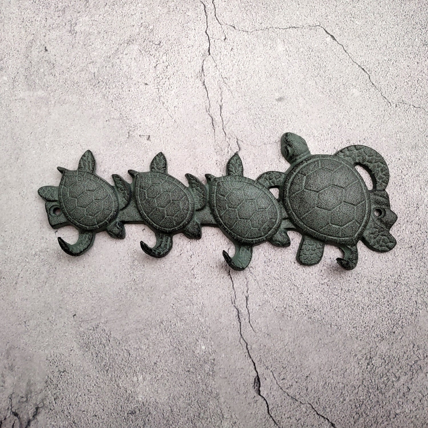 Sea Turtle Family Wall Hook Rack Cast Iron Green Patina (1 hook rack approx. 10 inches) Green Sea Turtle Hook Rack for coastal decor! is backordered and will ship as soon as it is back in stock.