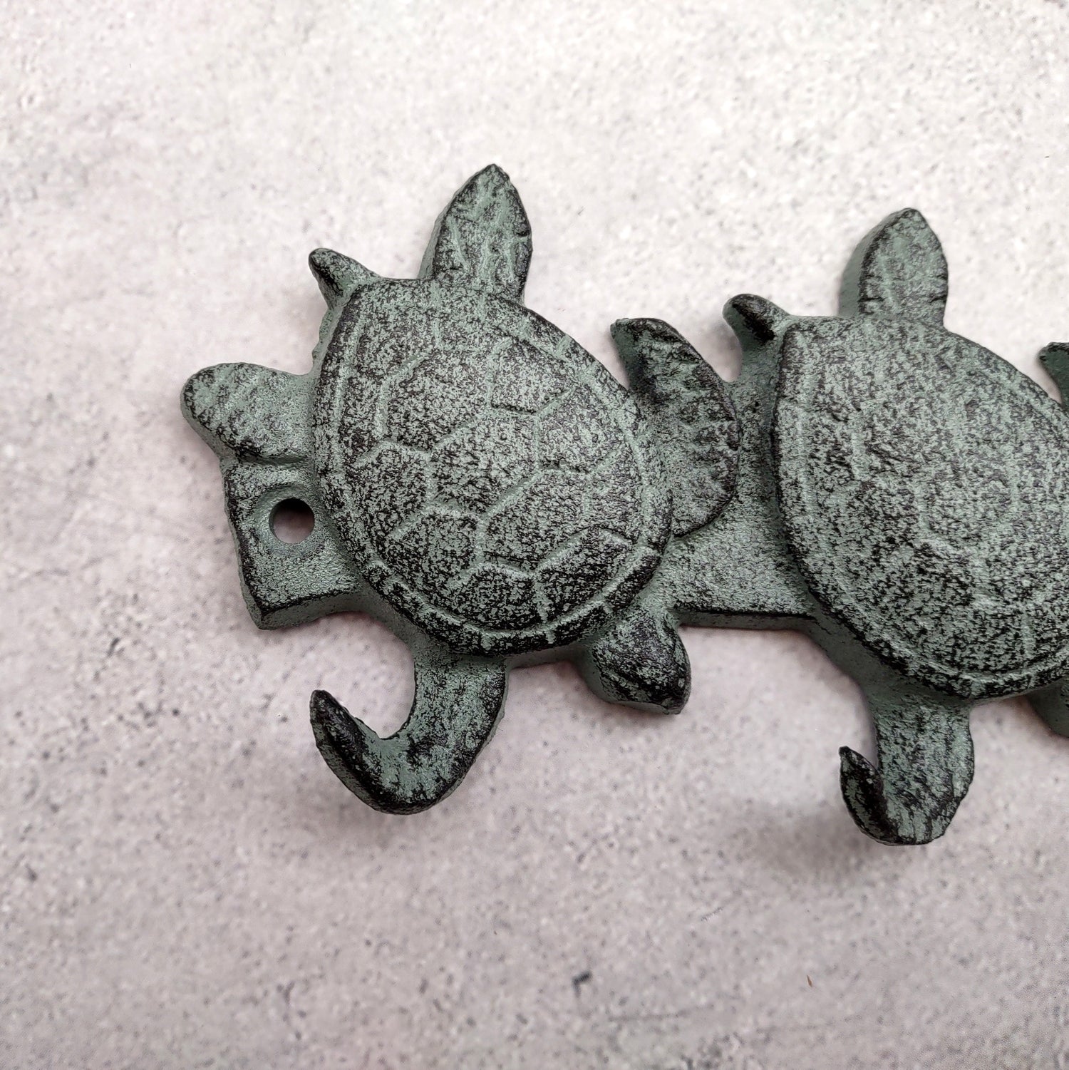 Sea Turtle Family Wall Hook Rack Cast Iron Green Patina (1 hook rack approx. 10 inches) Green Sea Turtle Hook Rack for coastal decor!