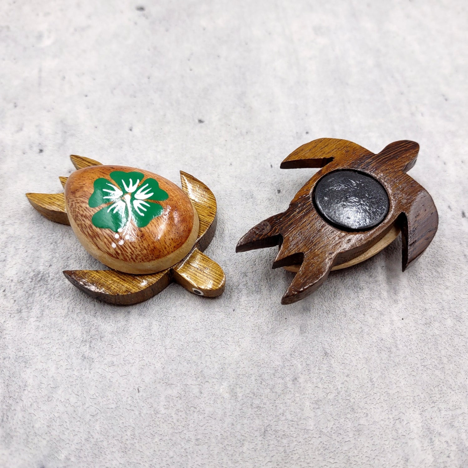 - Green Hibiscus Flower Wooden Sea Turtle Magnet