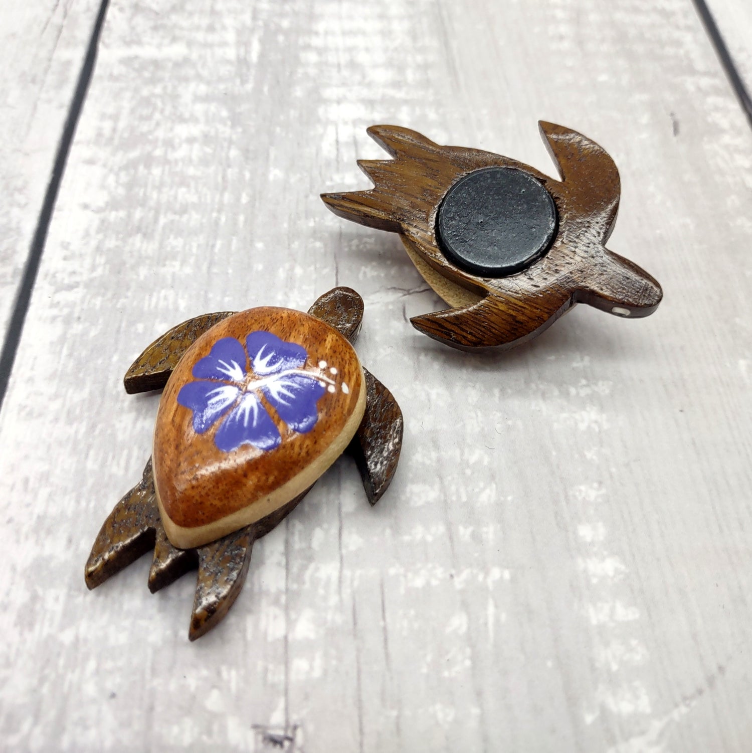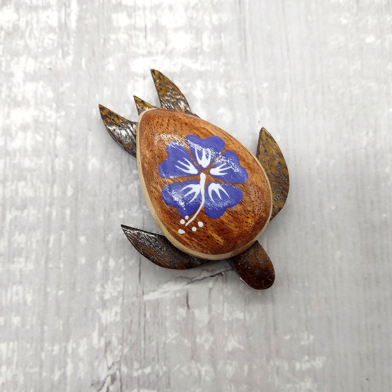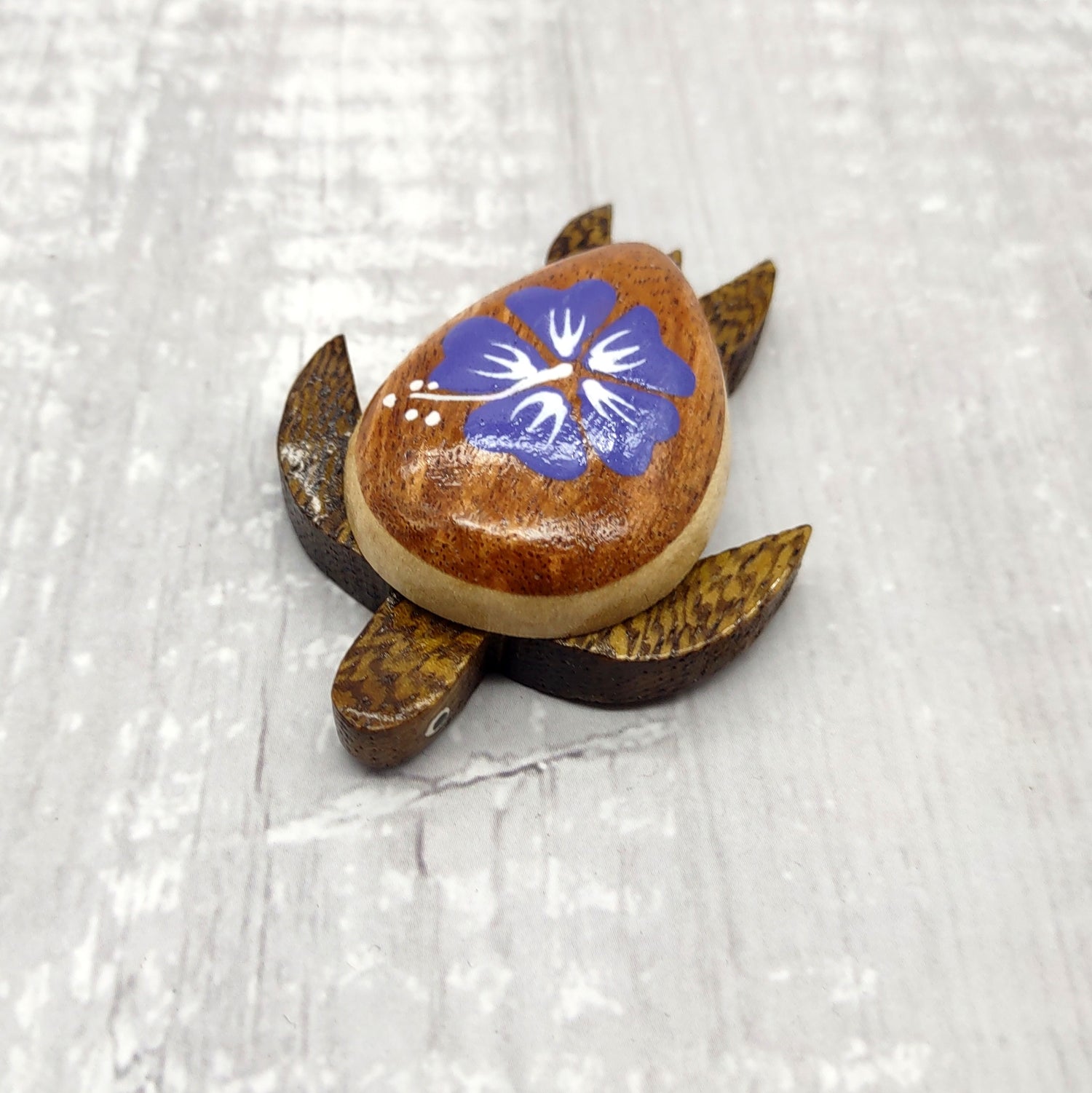 - Purple Hibiscus Flower Wooden Sea Turtle Magnet