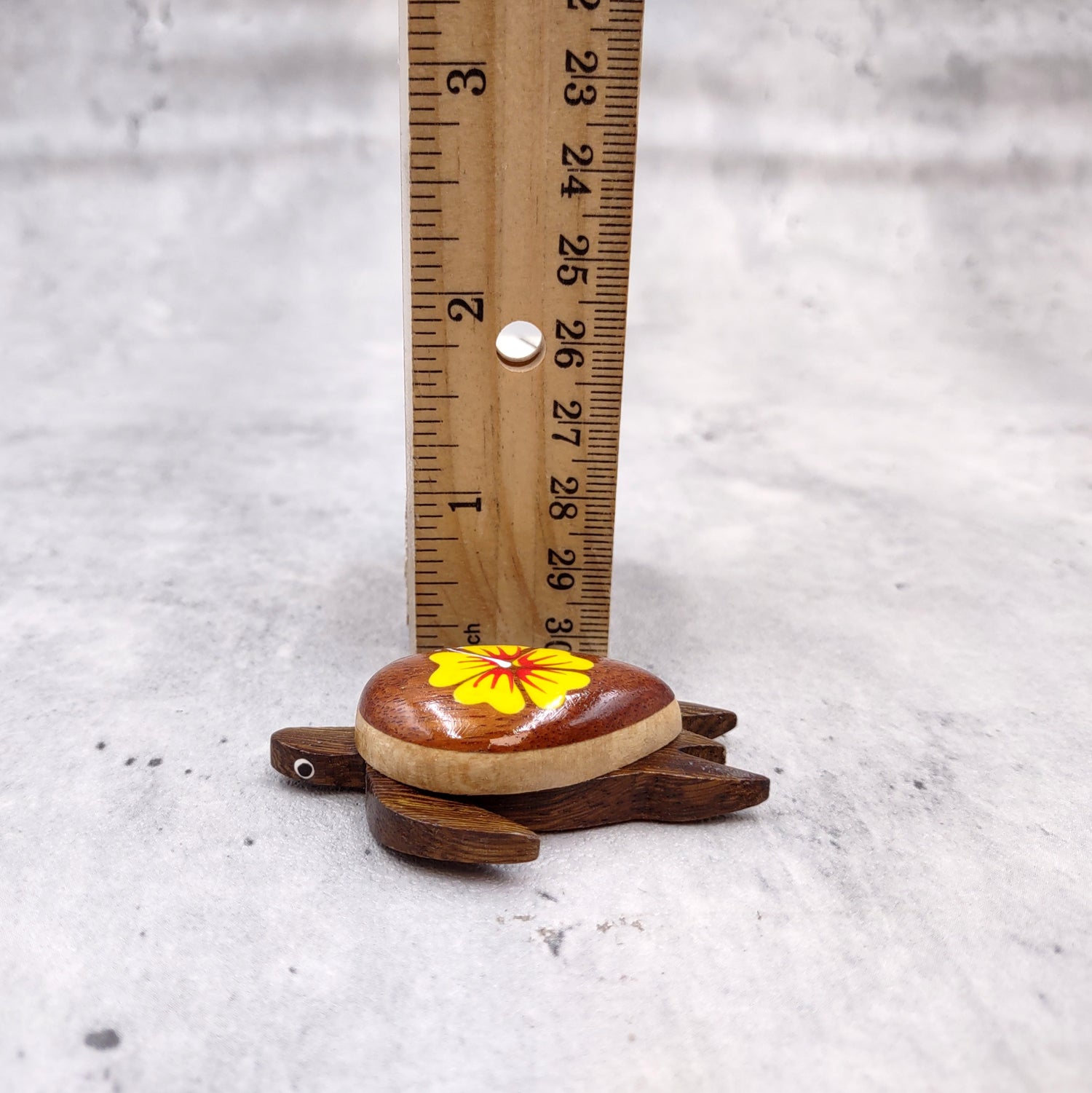 - Yellow Hibiscus Flower Wooden Sea Turtle Magnet