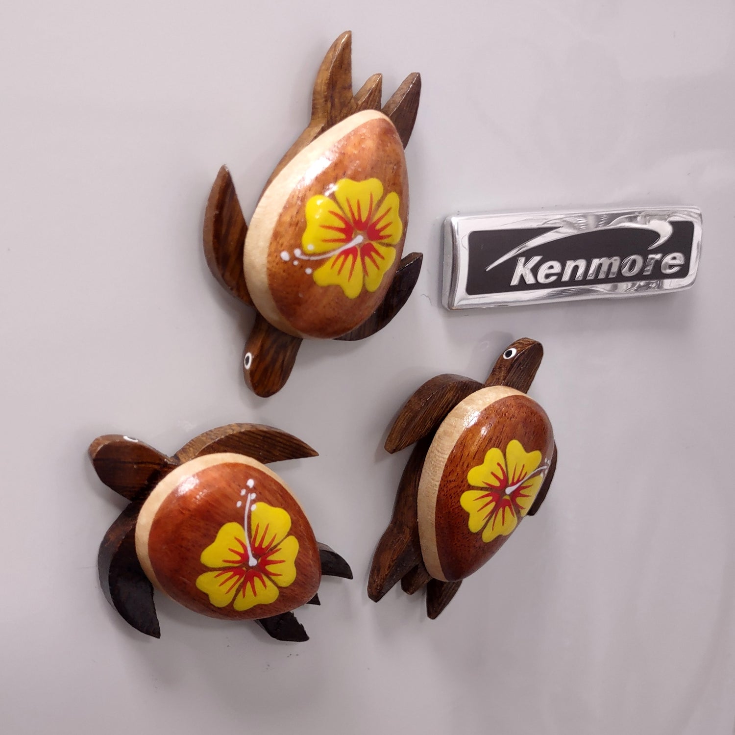 Wooden Sea Turtle Magnet Yellow Hibiscus Flower (1 magnet approx. 2+ inches) Wood Sea Turtle Magnet gift for fridges cabinets doors!
