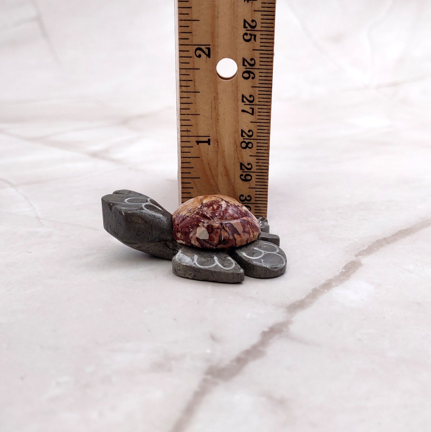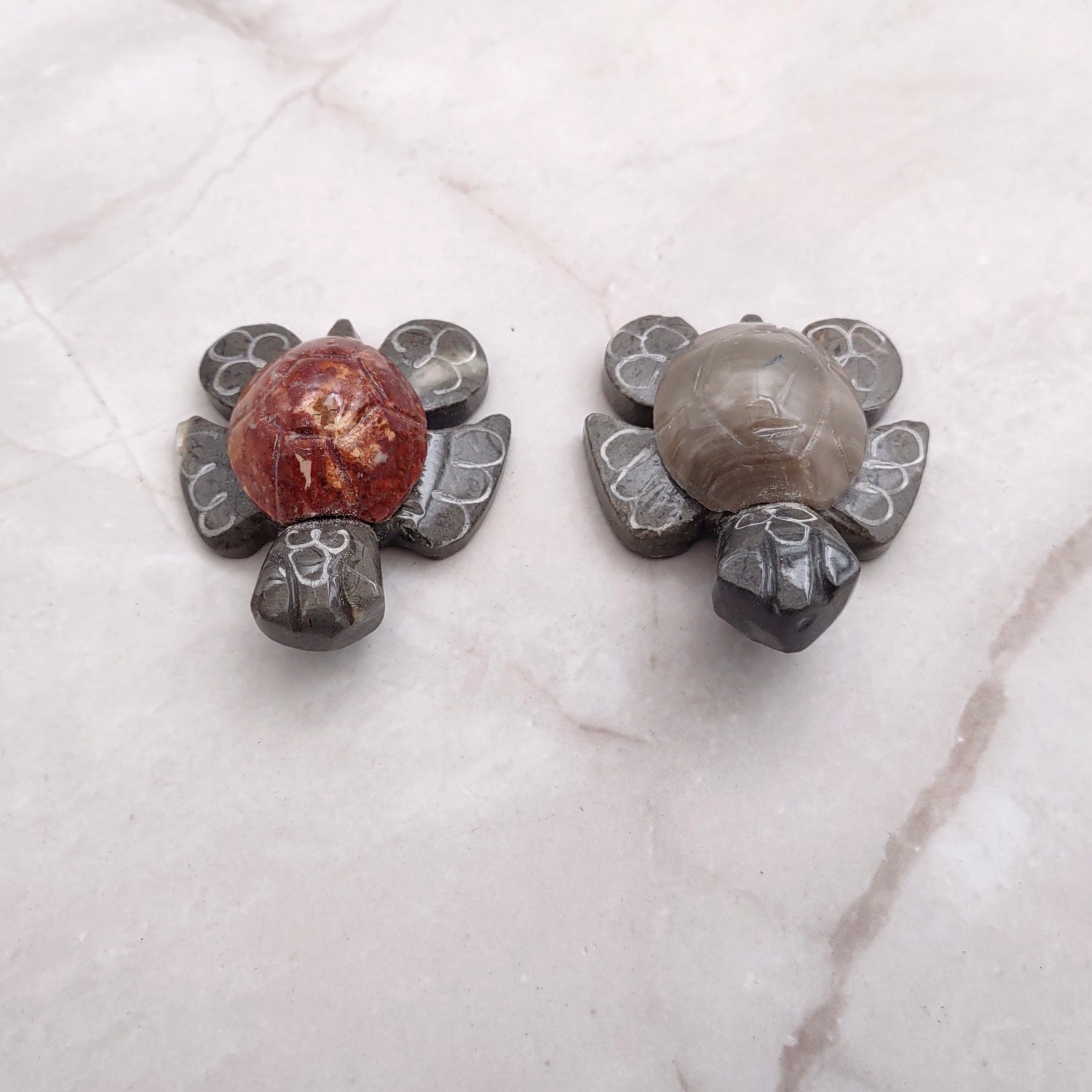 Natural Marble Stone Grey Sea Turtles (set of 2 stone figure approx. 2+ inches) Carved Marble Turtle Figurines for coastal home shelf decor!