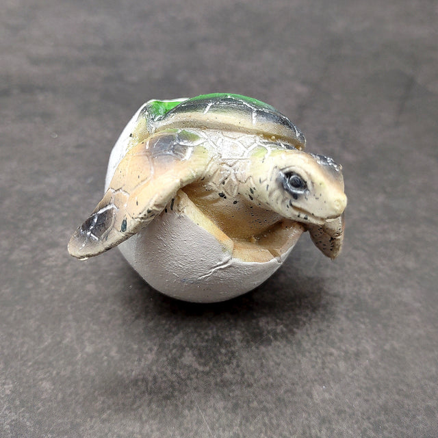 Bring the beauty of the ocean into your home with this green painted resin baby turtle egg figurine decoration. Featuring an adorable baby turtle emerging from its shell, this piece captures the wonder of new life and the playful spirit of marine creatures. The hand-painted green finish paired with the textured resin design adds striking detail and dimension, making it a standout accent from every angle.