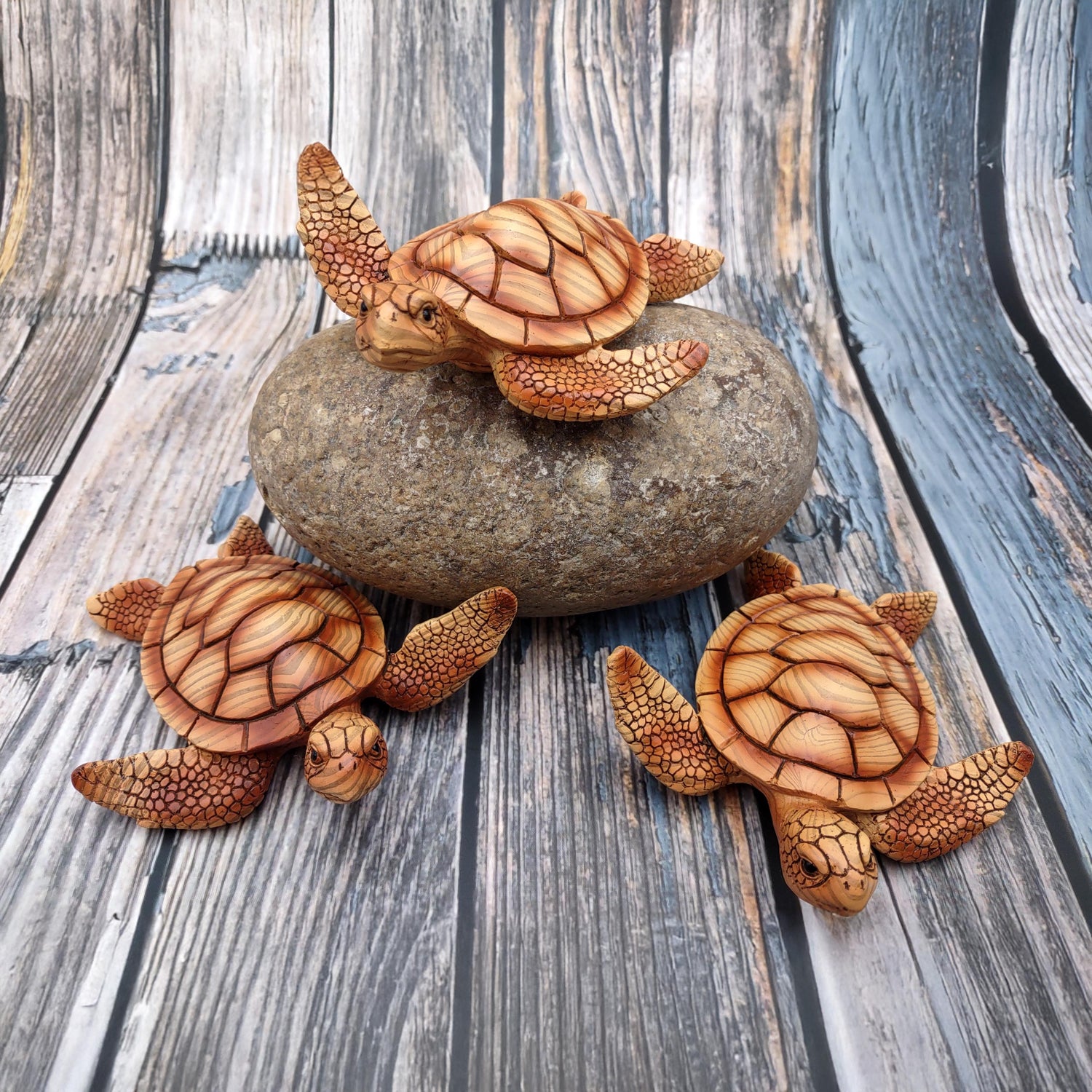 Enhance your home decor with this beautifully crafted 5-inch resin turtle figurine, featuring a realistic wood grain finish and detailed texture that mimics the natural look of wood. Its lifelike design captures the graceful and calming presence of sea turtles, making it a charming addition to any coastal or nautical-themed space. Perfect for display on bookshelves, coffee tables, or mantels, this figurine adds a touch of ocean-inspired elegance to your living area