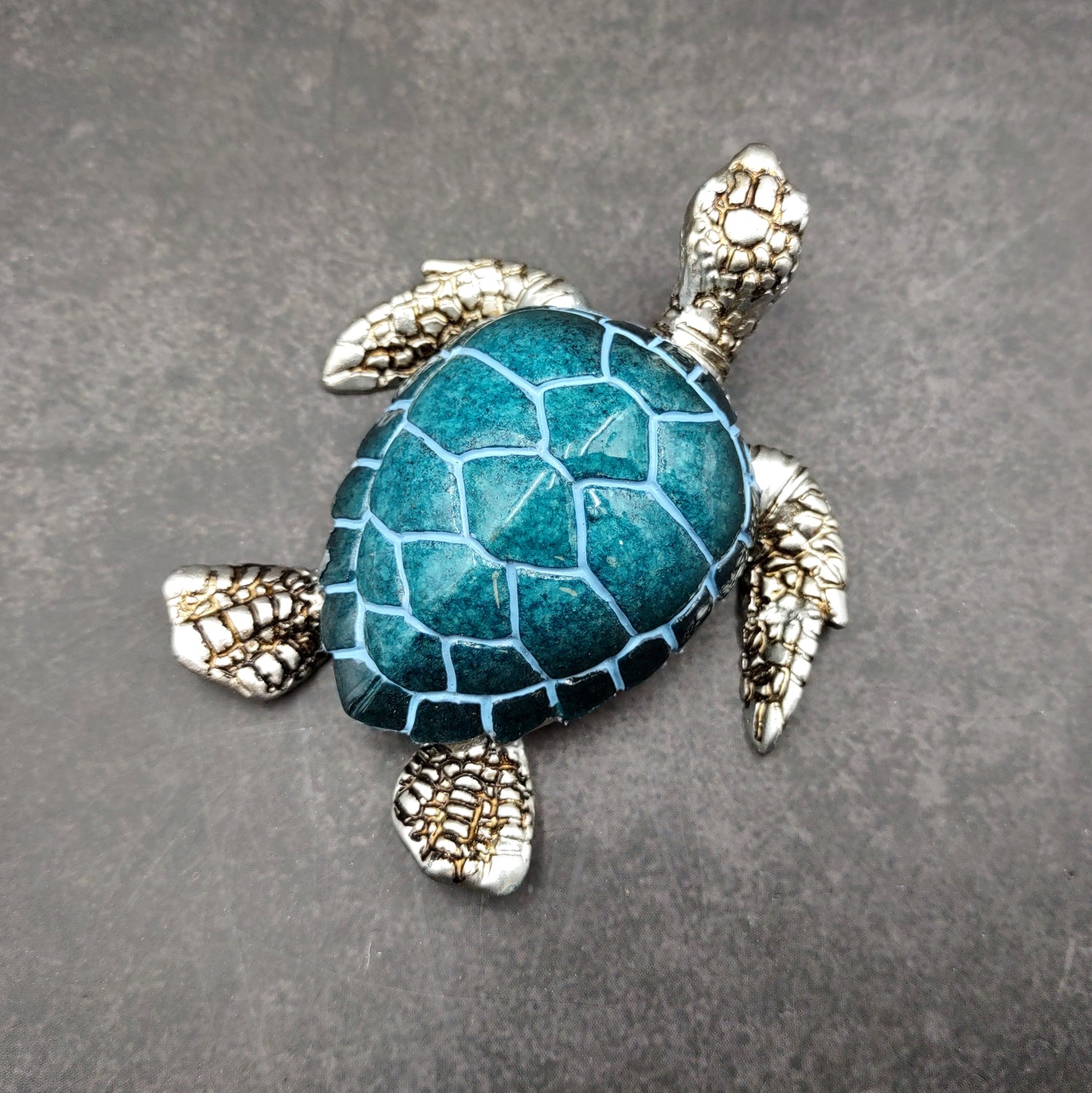 Silver Blue Sea Turtle Resin Painted Figurine (1 turtle approx. 3+ inches) Resin Silver Blue Sea Turtle Figure for gifting décor & display!
