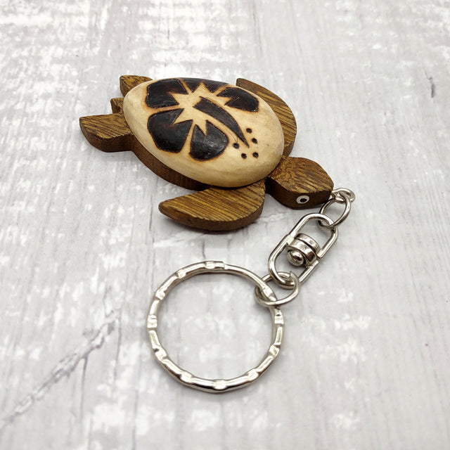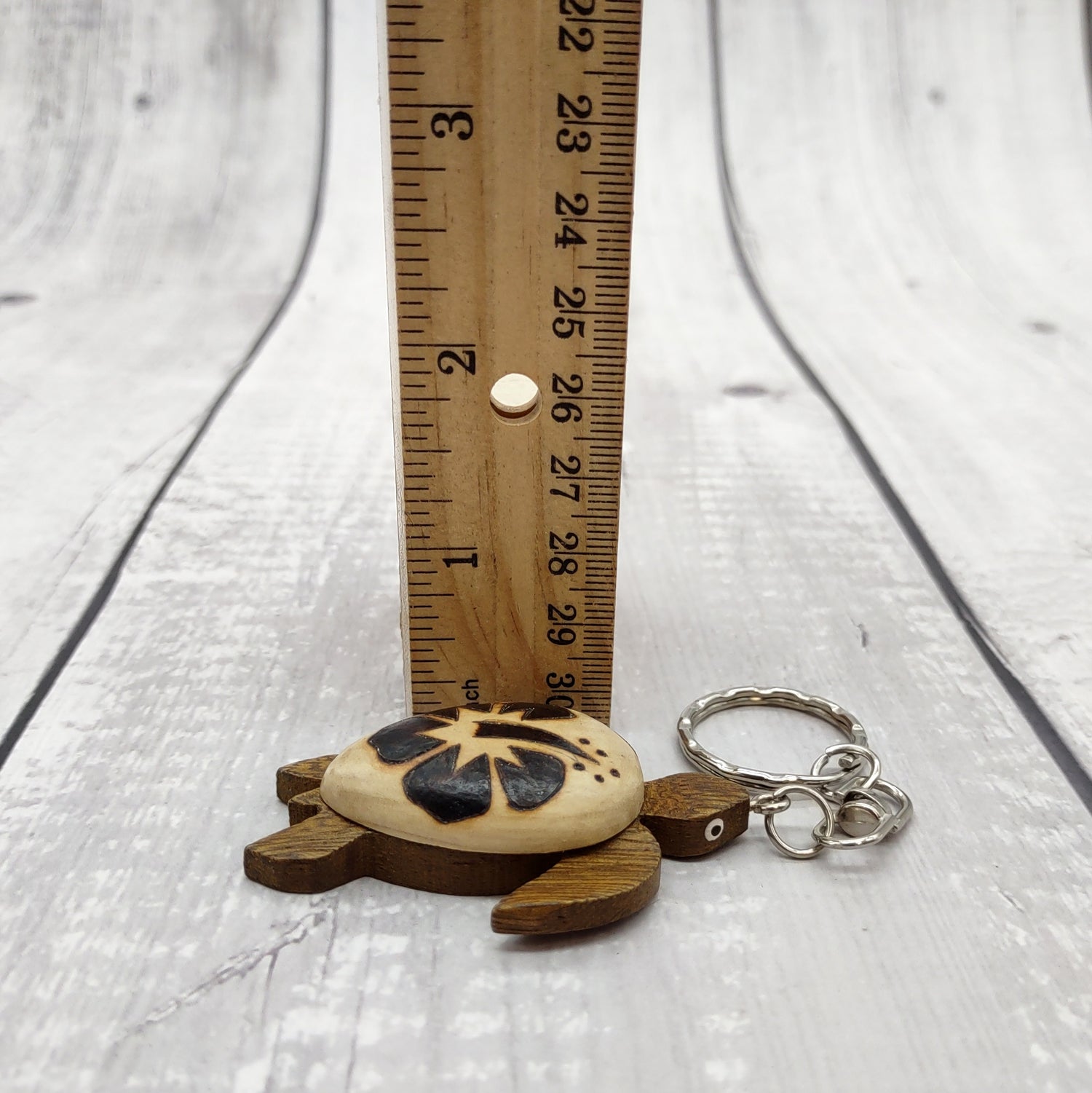 - Natural Wood Hibiscus Sea Turtle Keychain