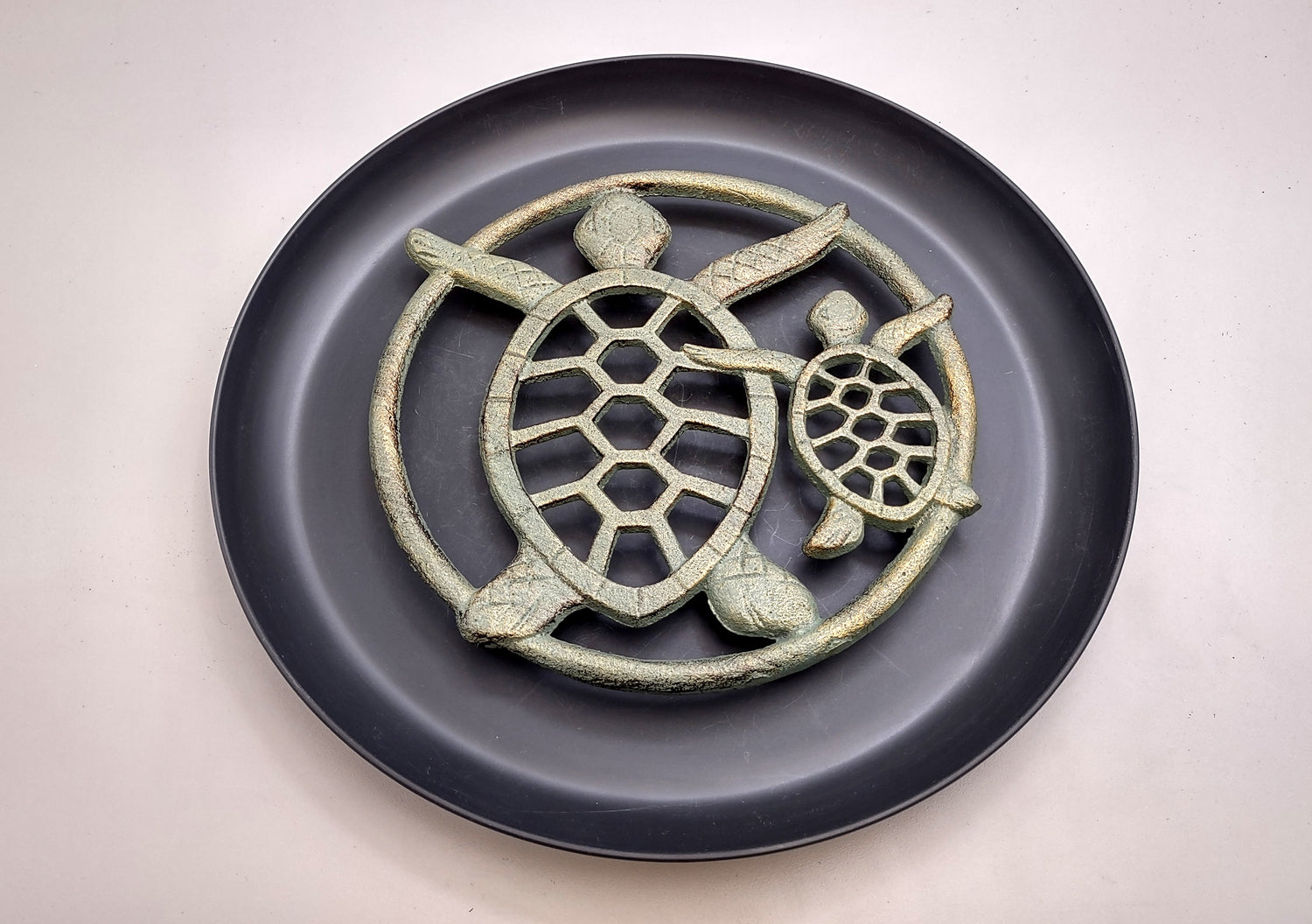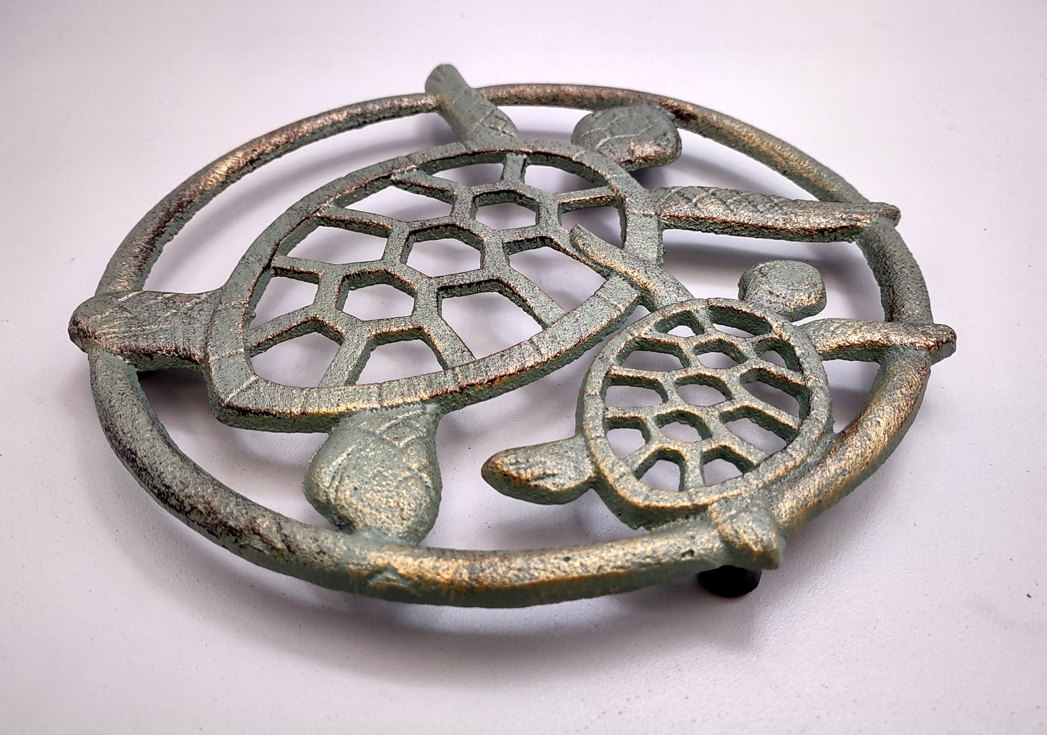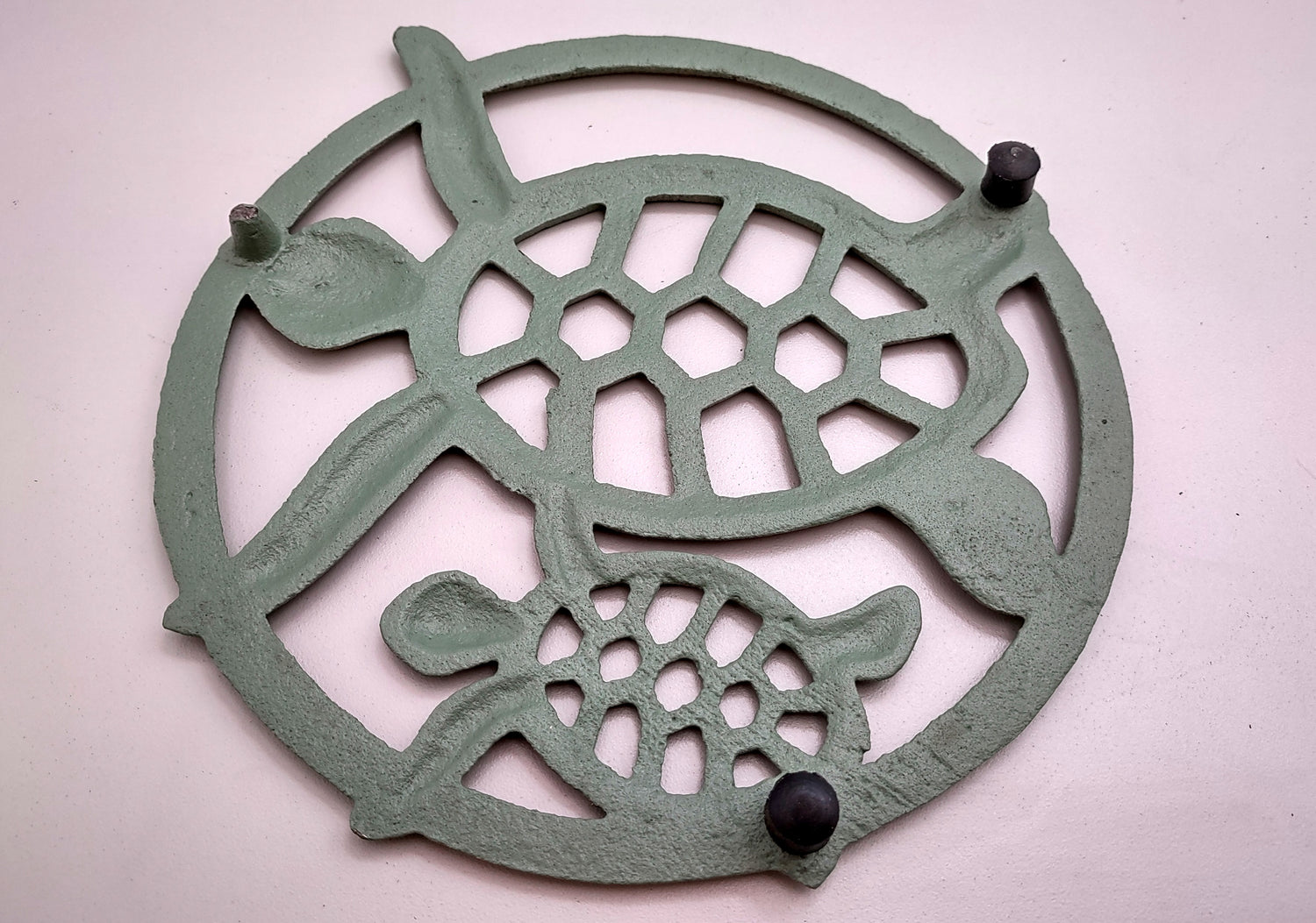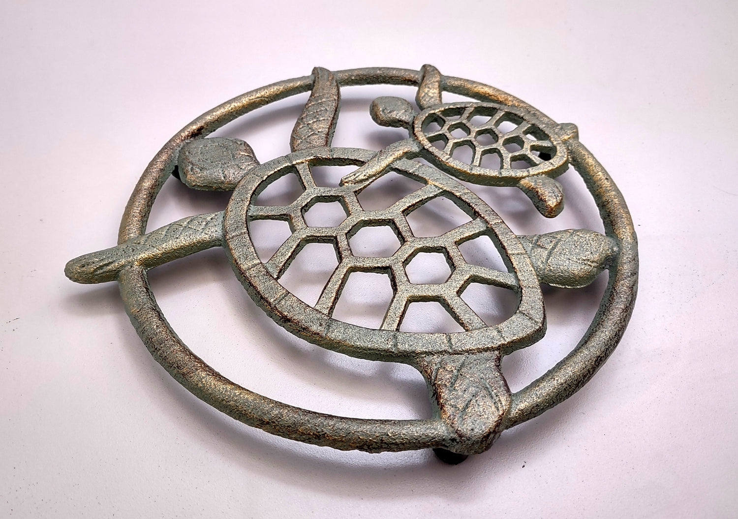 - Cast Iron Sea Turtle Duo Hot Plate Trivet with rubber feet