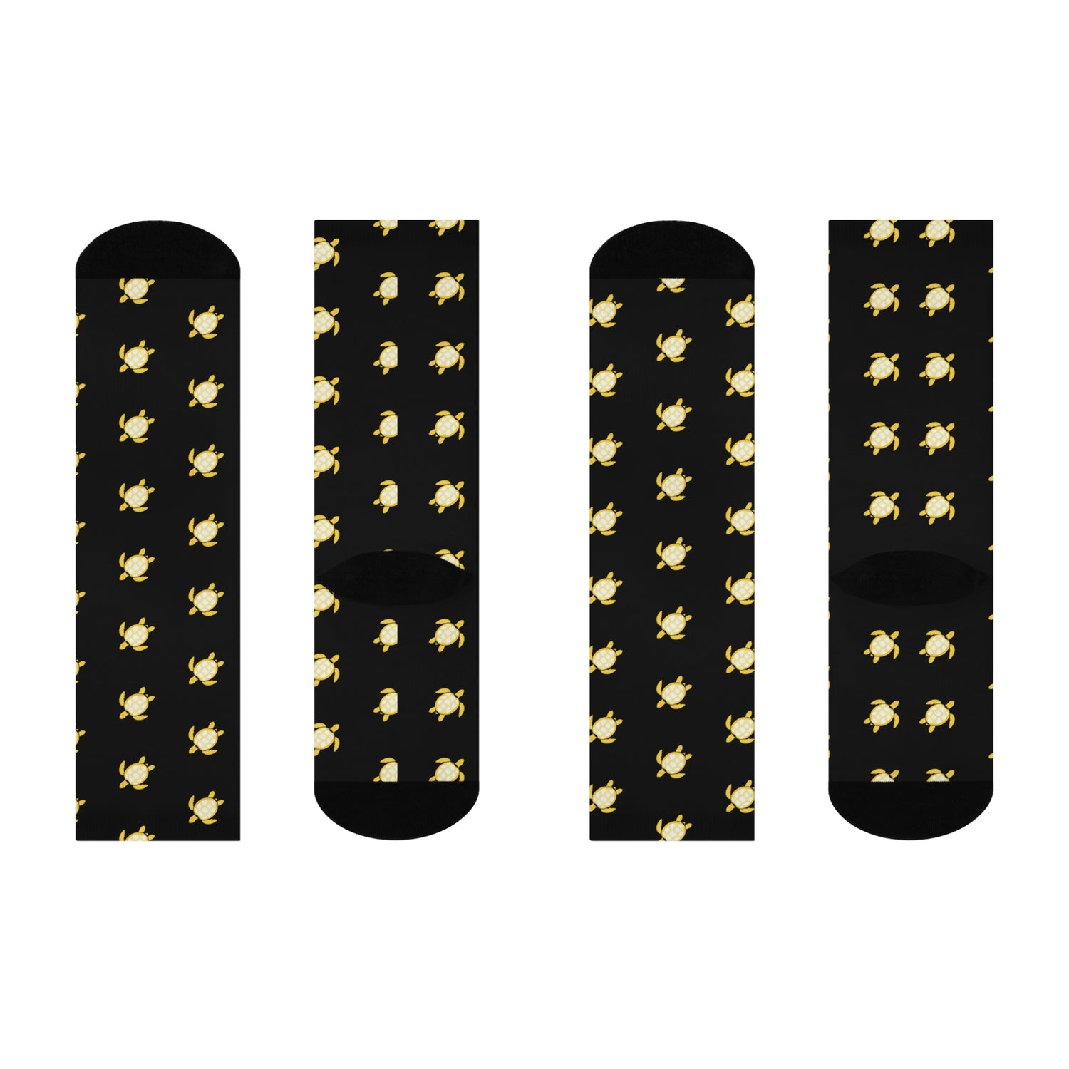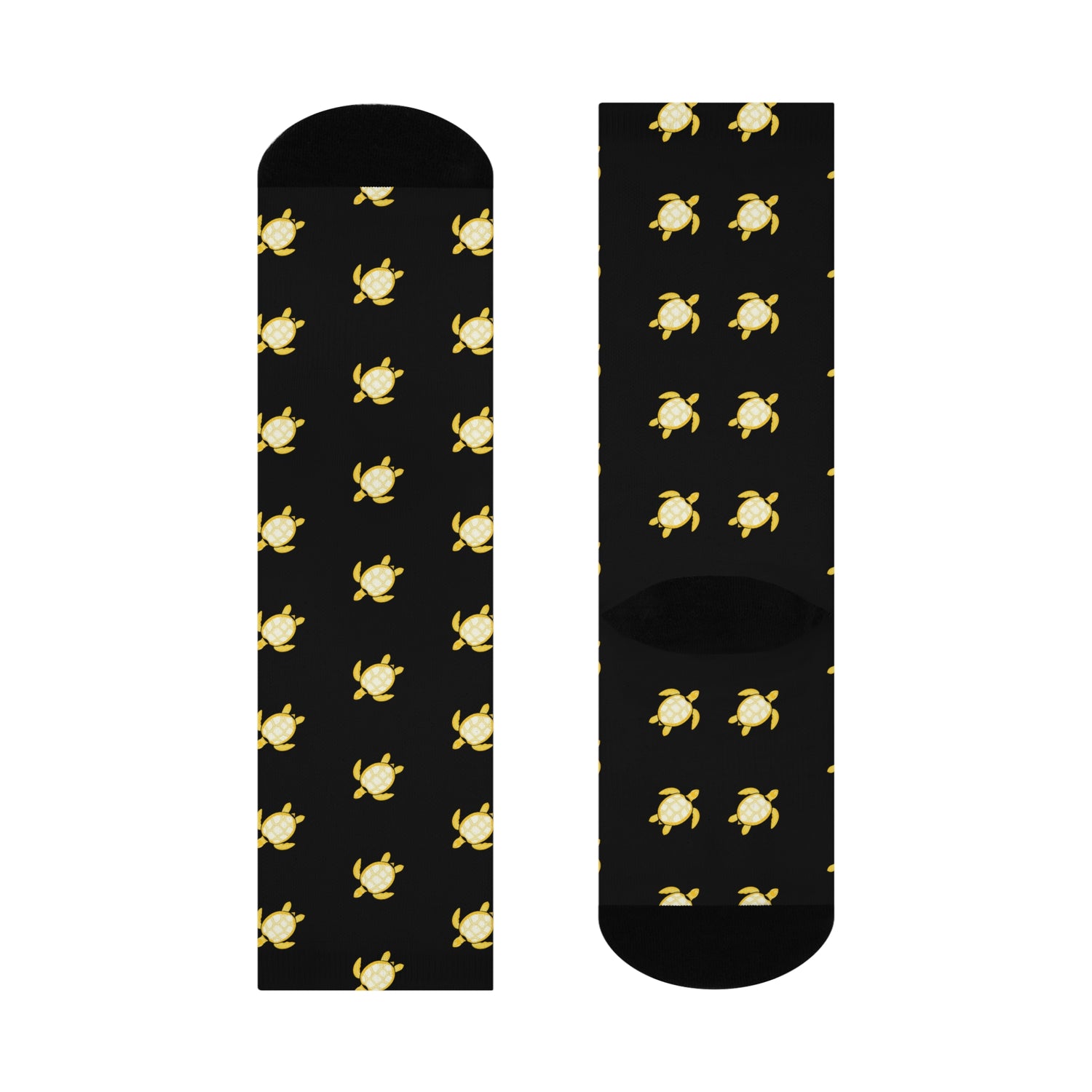 Black and Yellow Sea Turtle Cushioned Crew Socks