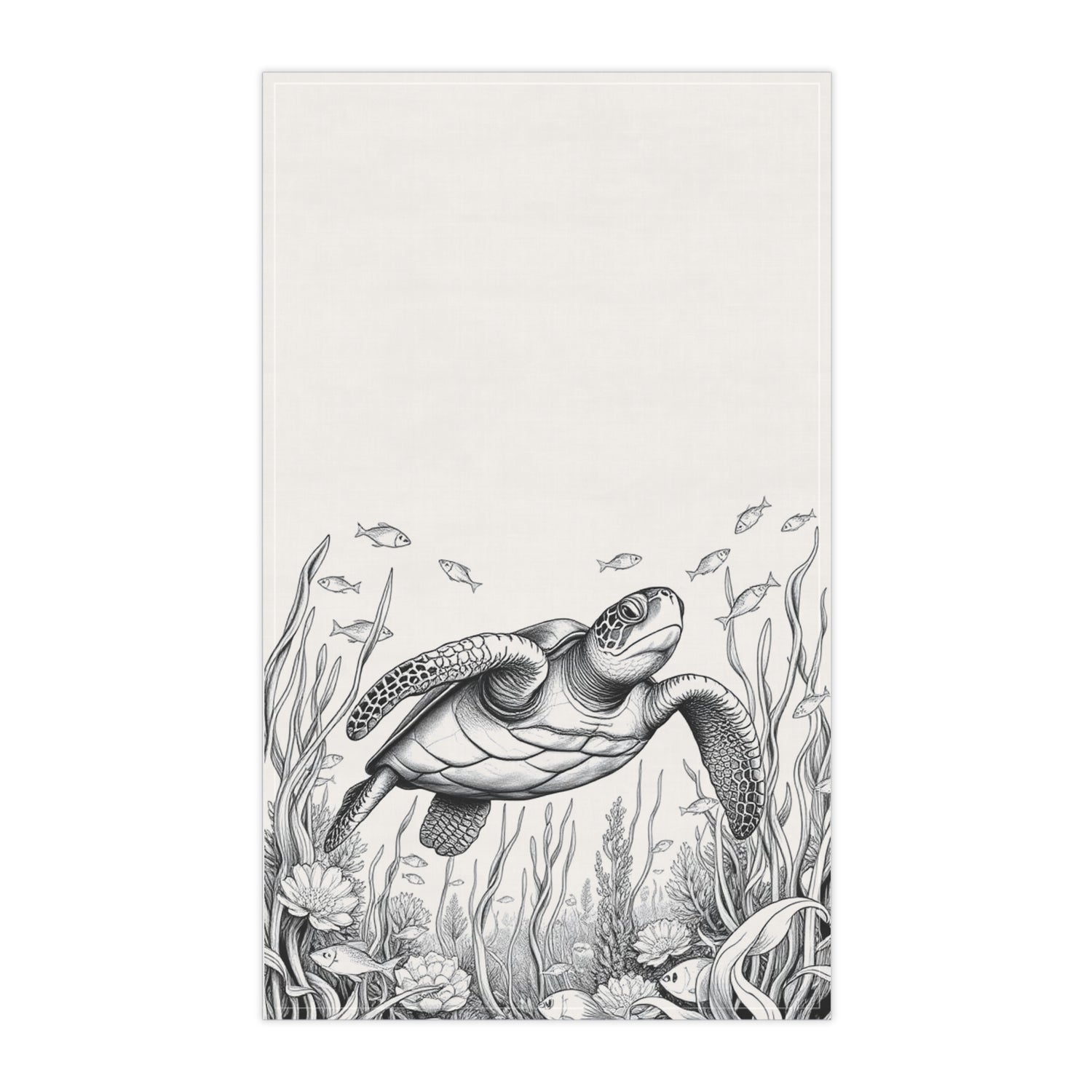 Black n White Sea Turtle Tea Towel (cotton, poly) - Cotton Twill / 18" × 30" is backordered and will ship as soon as it is back in stock.