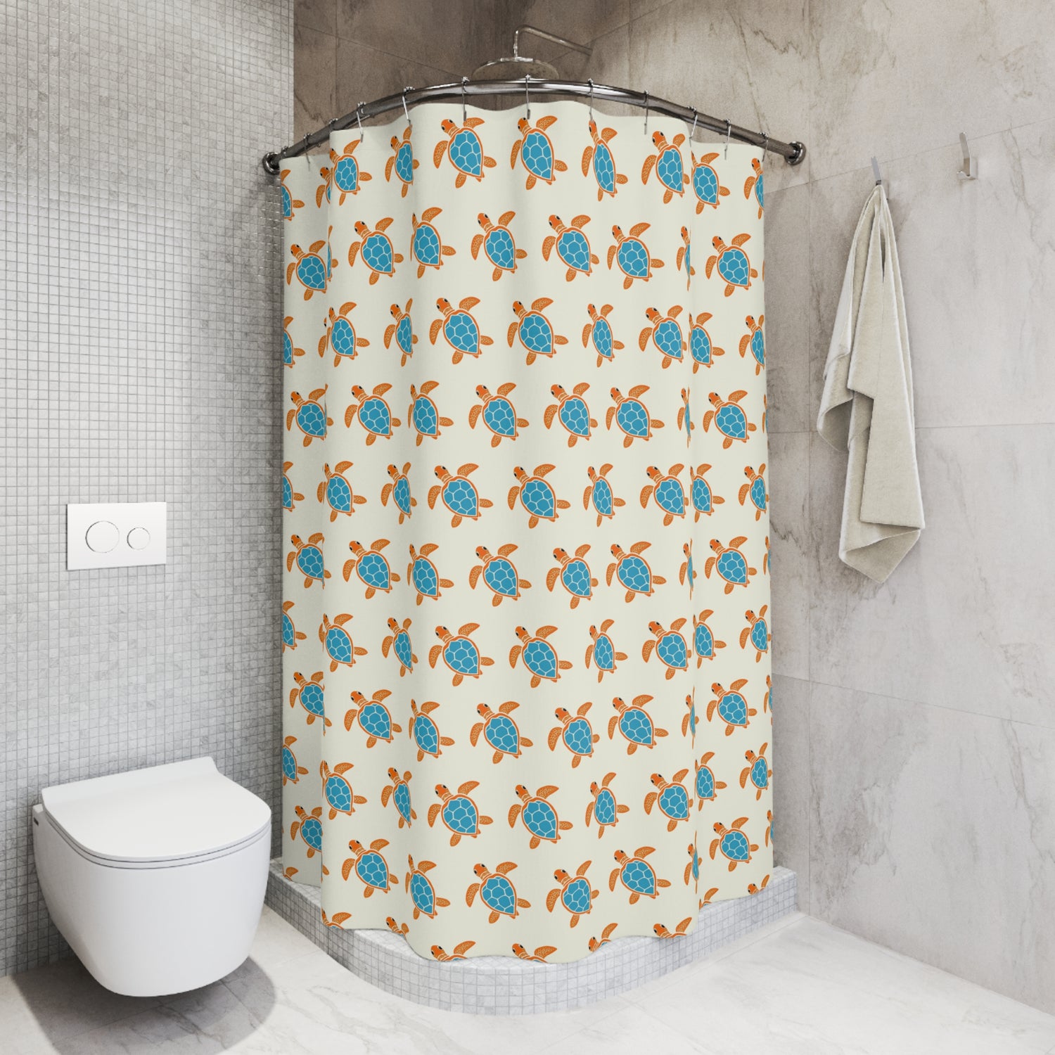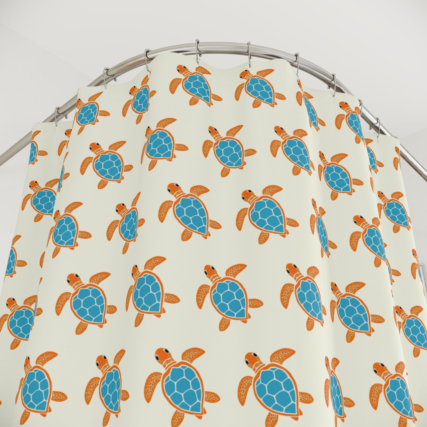 Blue and Orange Sea Turtle Shower Curtains, Coastal Bathroom Decor, Nature-Inspired Home, Ocean-Themed Gifts, Eco-Friendly Design