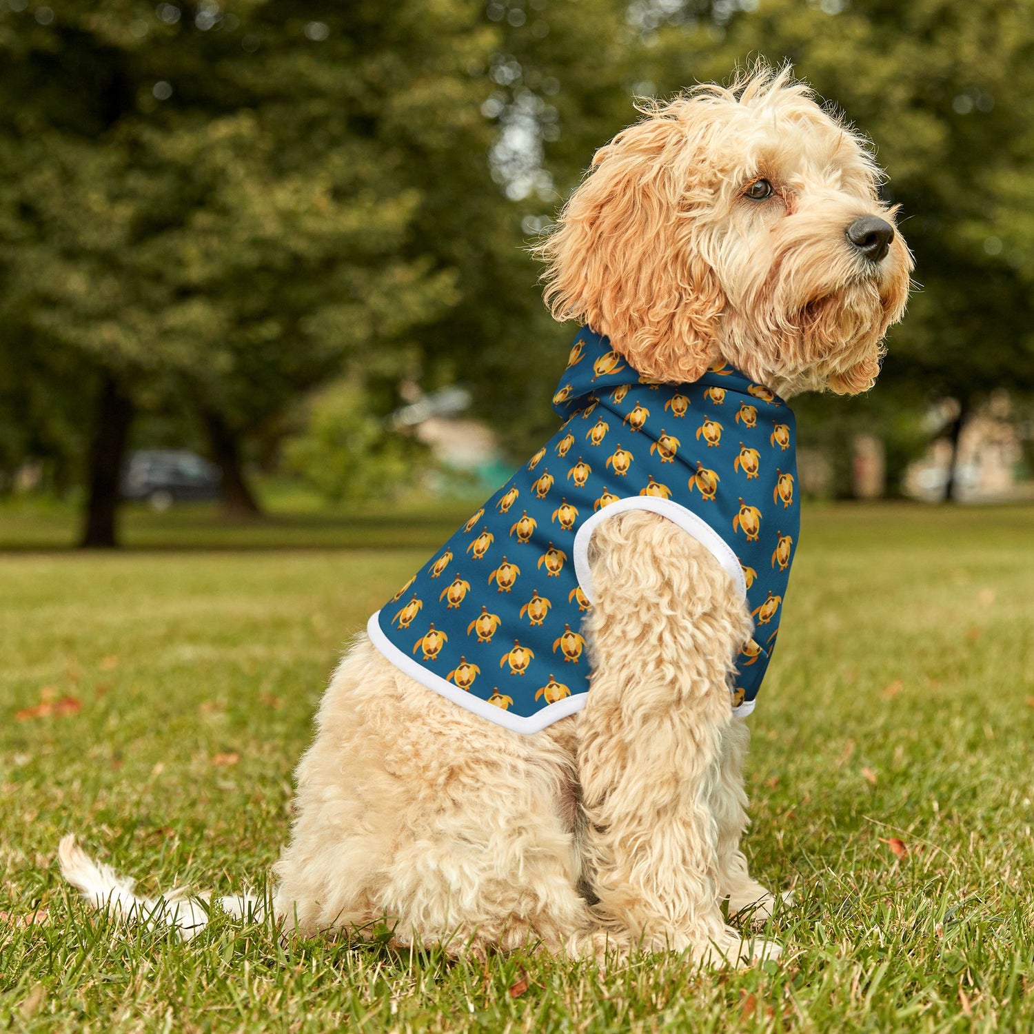 Blue and Yellow Sea Turtle Pet Hoodie with Fun Pattern, Cute Dog Apparel, Cozy Pet Clothing, Fashionable Winter Wear for Pets, Adorable Pet Gift