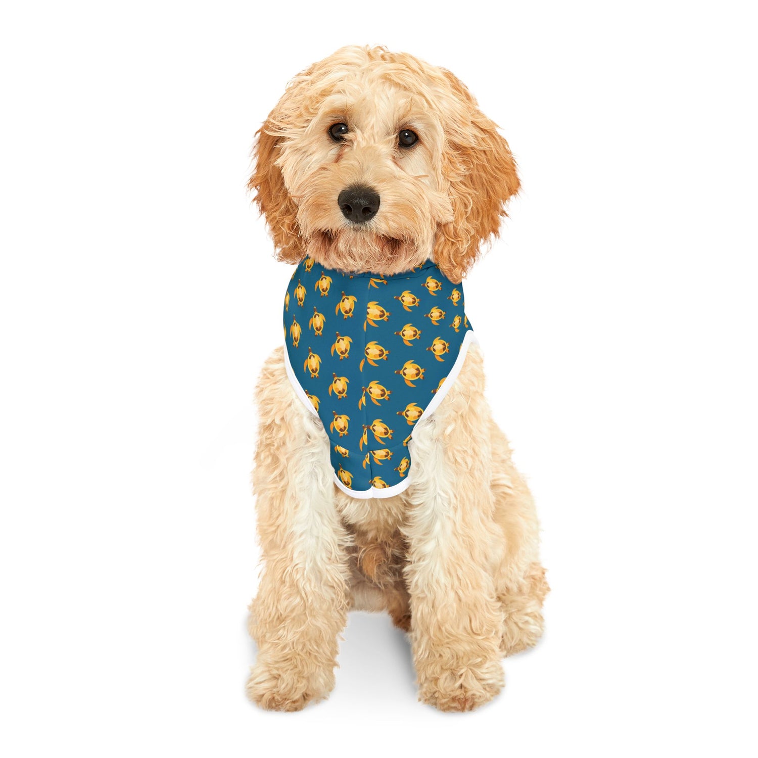 Blue and Yellow Sea Turtle Pet Hoodie - XXS / White Rib is backordered and will ship as soon as it is back in stock.