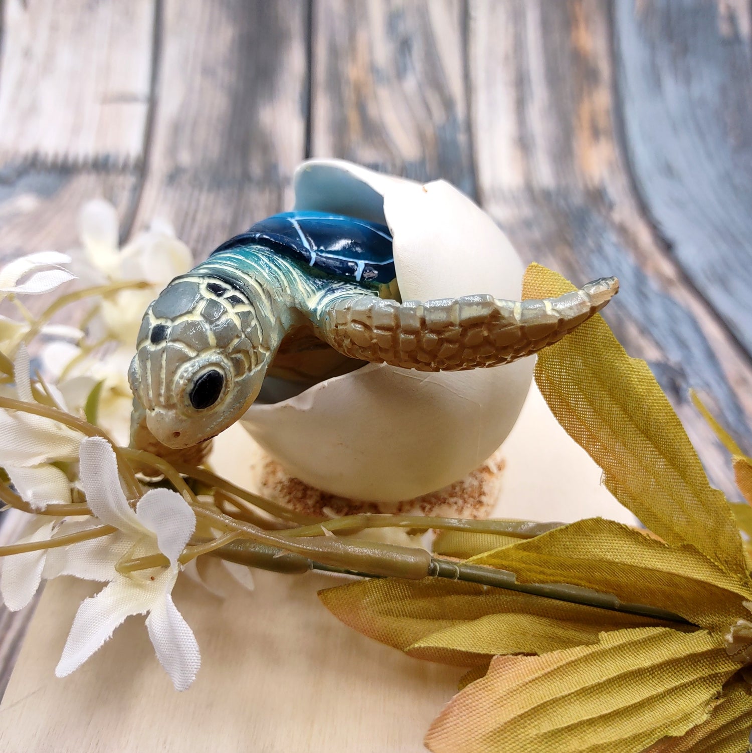 Blue Baby Sea Turtle Hatching Figure (1 turtle approx. 3+ inches) Blue Painted Resin Baby Turtle Egg Figure for coastal home décor!