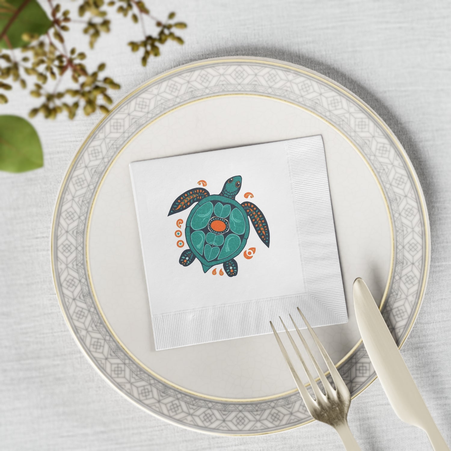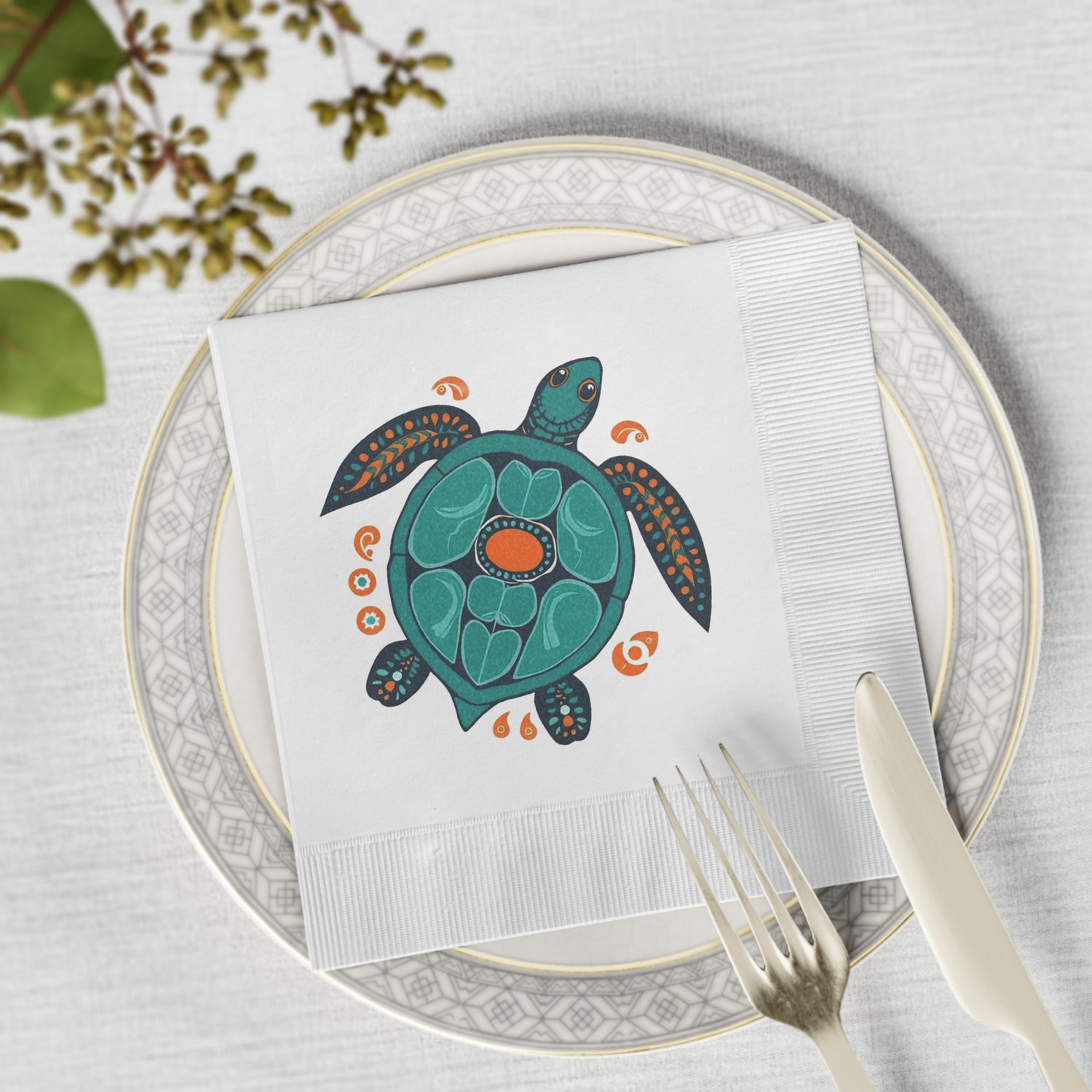 Blue Boho Tropical SeaTurtle-Themed Cocktail Napkins, Party Decor, Wedding Reception, Beach Party, Eco-Friendly Tableware, Coastal Vibes