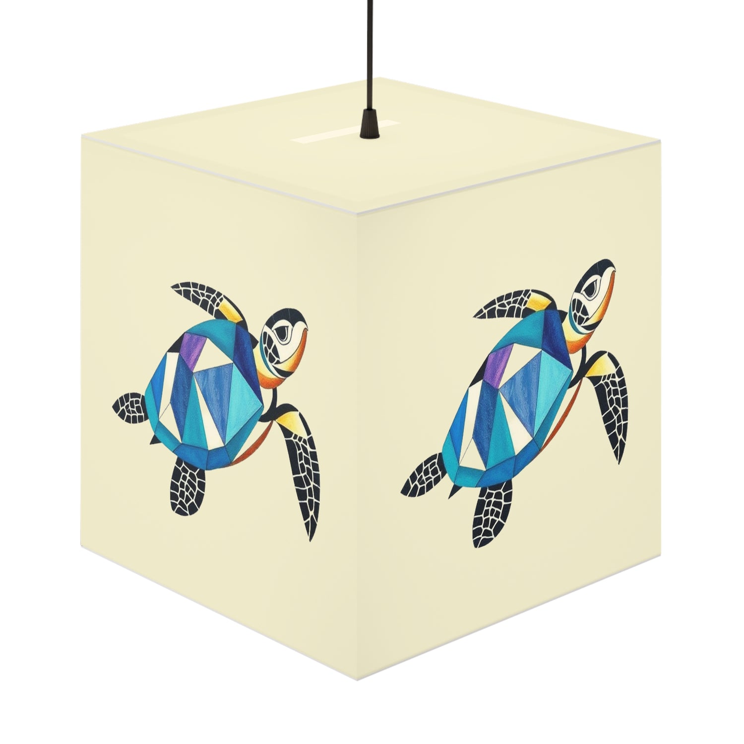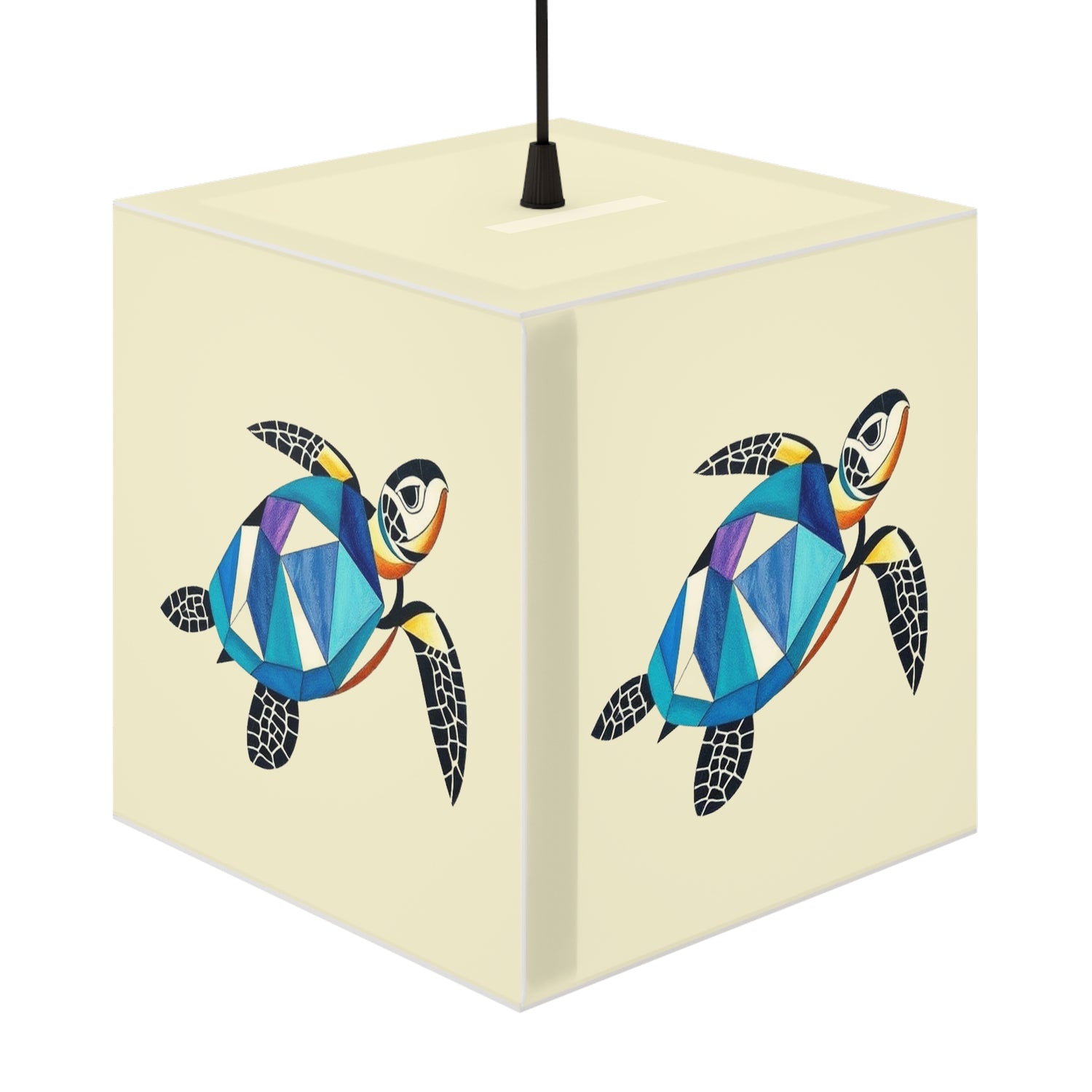Blue Collage Sea Turtle Geometric Light Cube Lamp - 7.7" × 7.6" × 7.6" / Pendant (No Plug) / Not included is backordered and will ship as soon as it is back in stock.