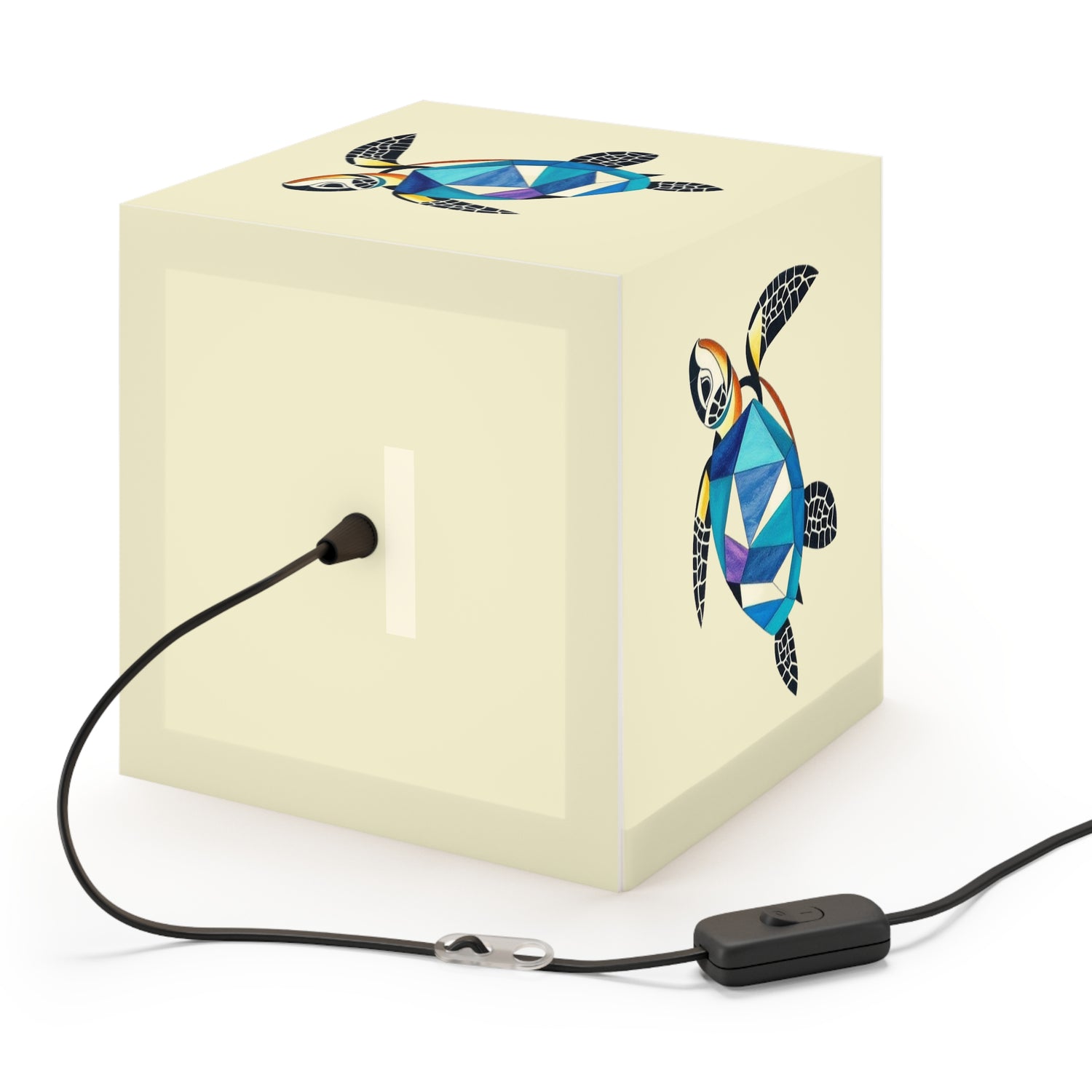 Blue Collage Sea Turtle Geometric Light Cube Lamp