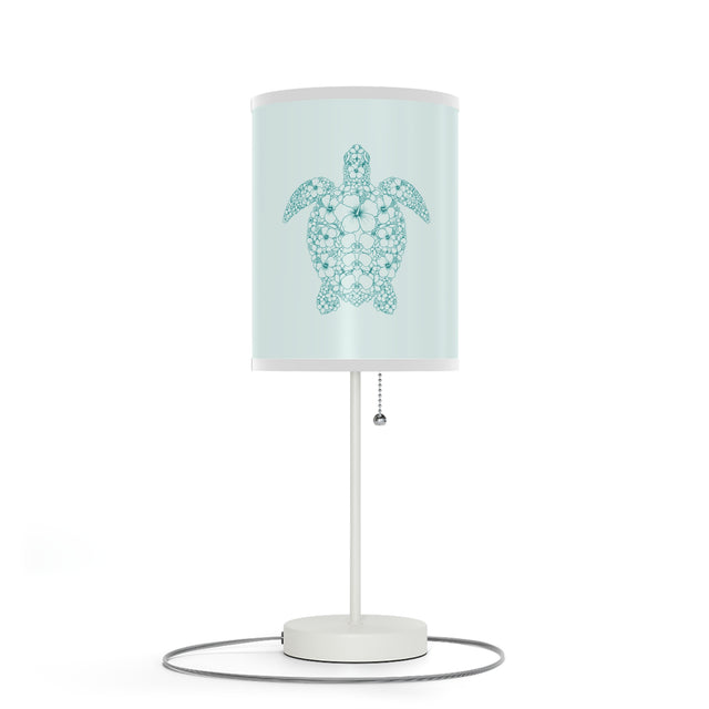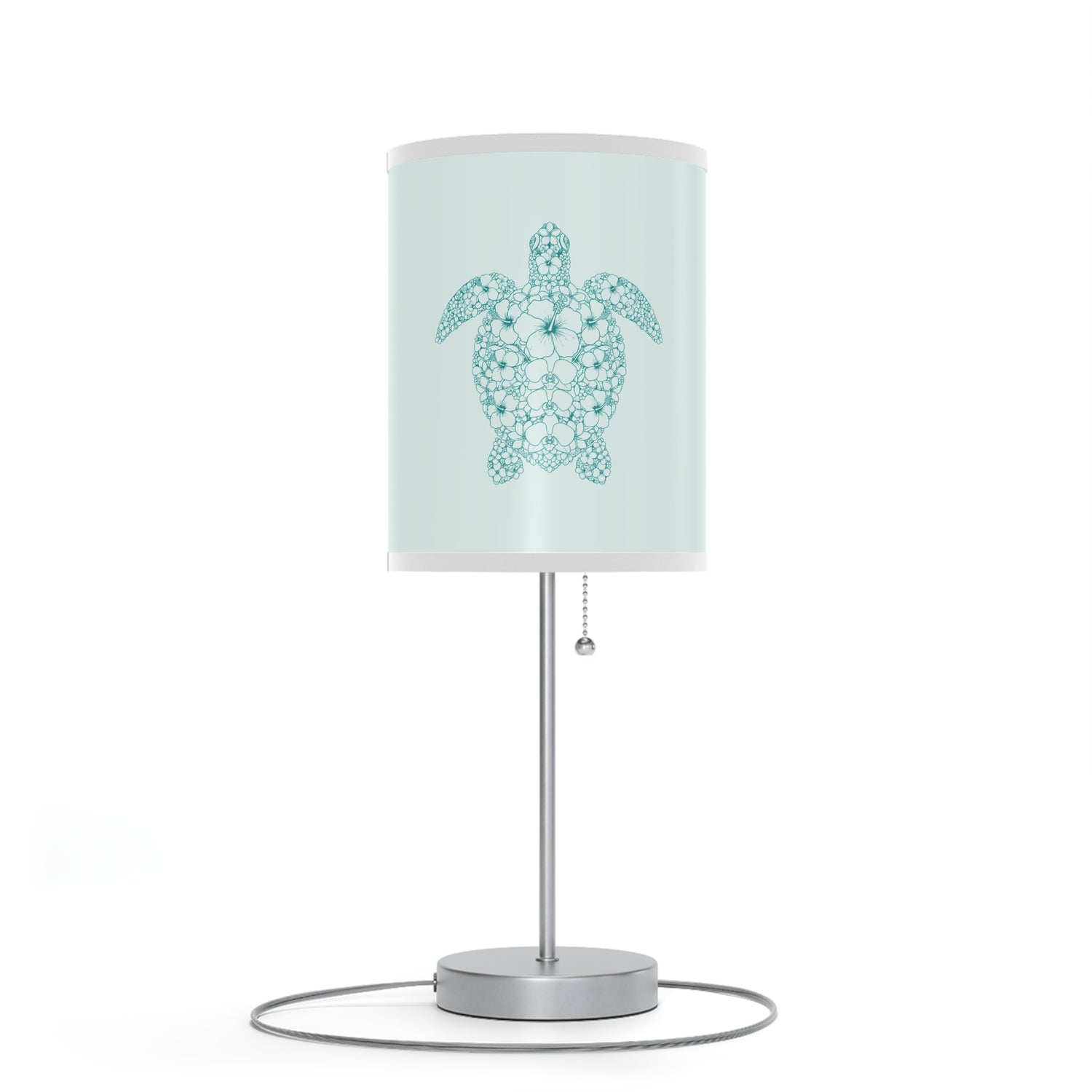 Blue Tropical Flower Sea Turtle Pattern Table Lamp - White / Silver / One size is backordered and will ship as soon as it is back in stock.