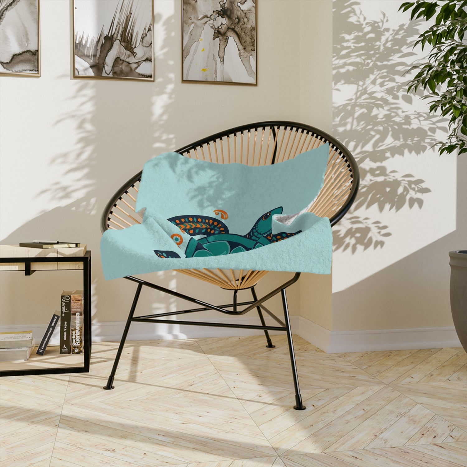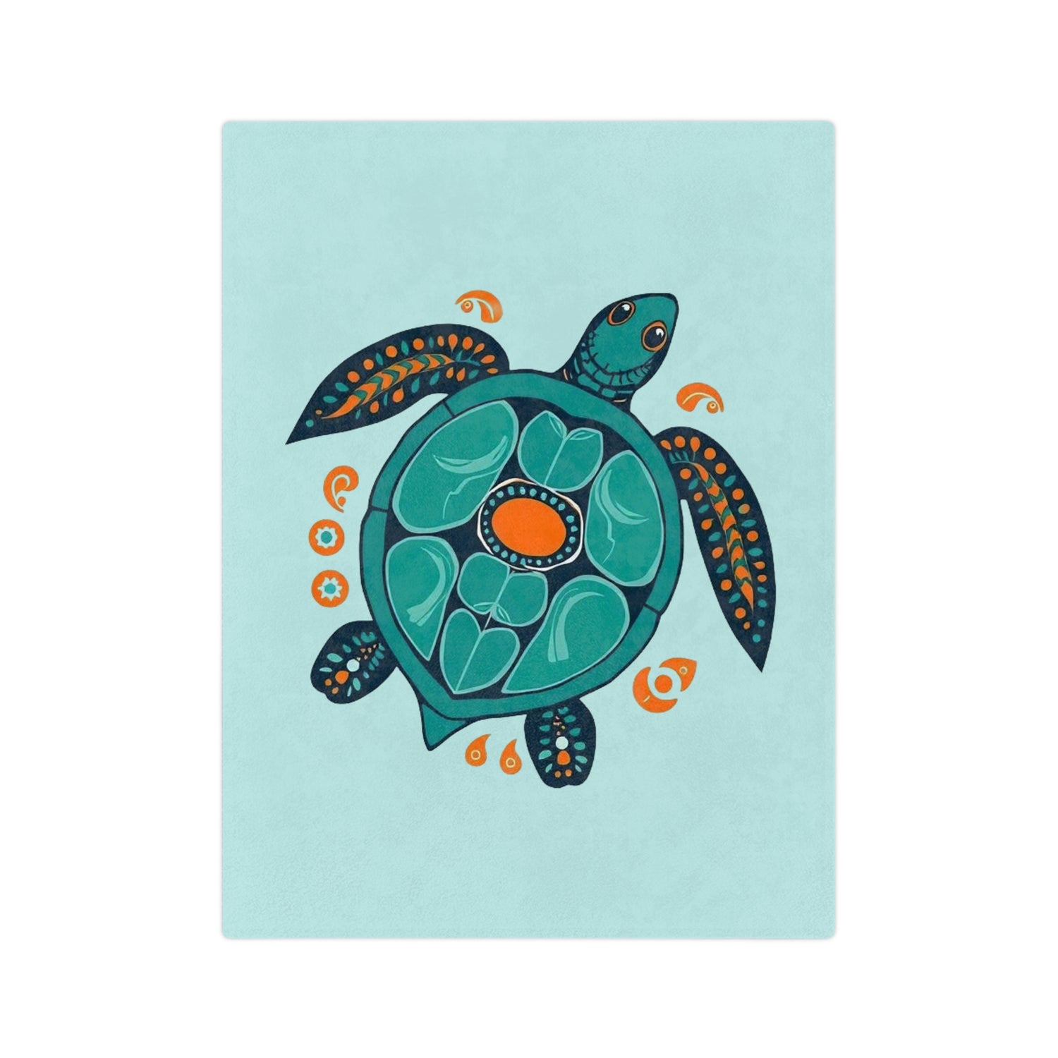Blue Turtle-Themed Velveteen Microfiber Blanket - Great for living rooms, bedroom or the beach - 3 Sizes