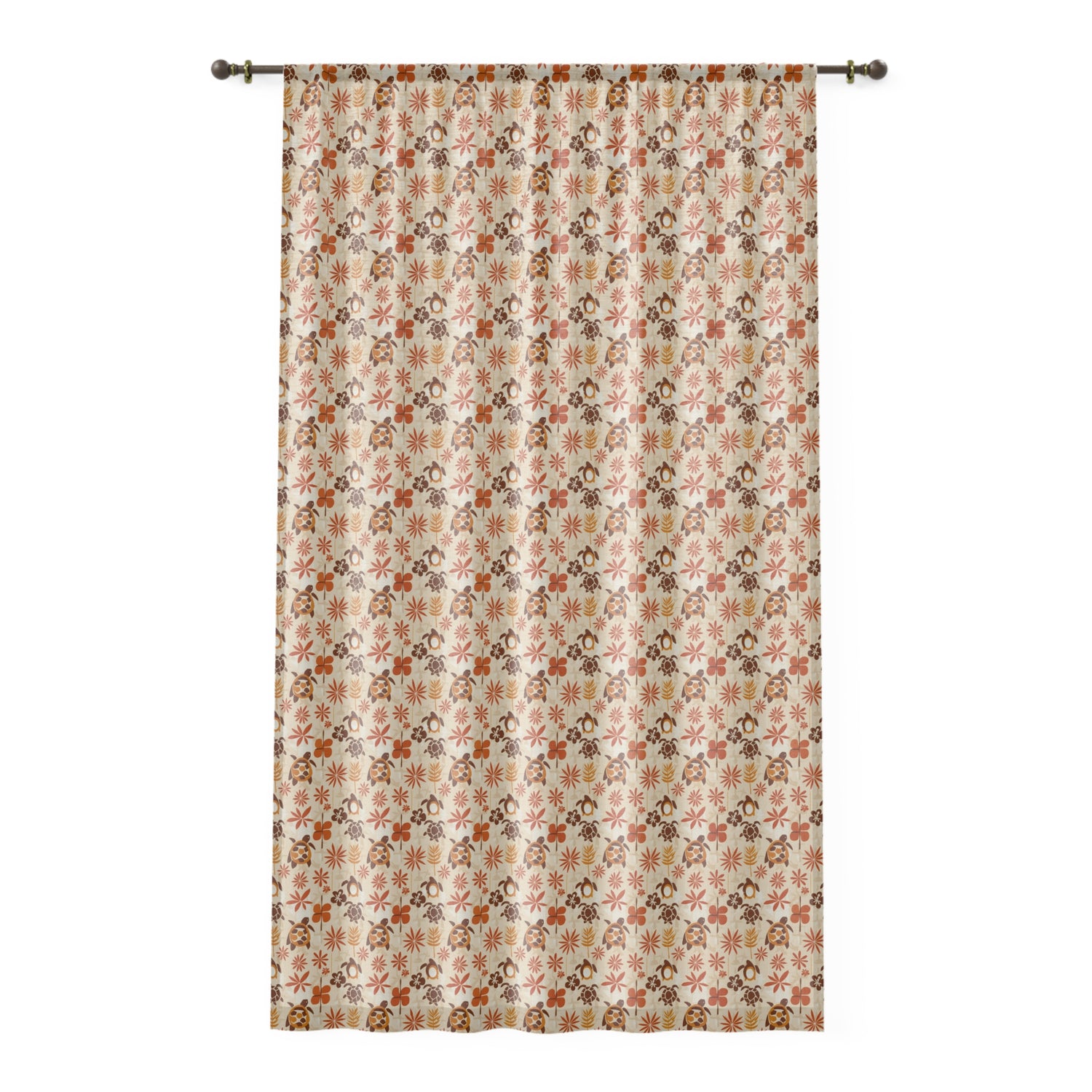 Brown and Orange Sea Turtle Tiki Pattern Window Curtain, Beach Decor, Coastal Home, Ocean Vibes, Eco-Friendly Drapes, Summer Living