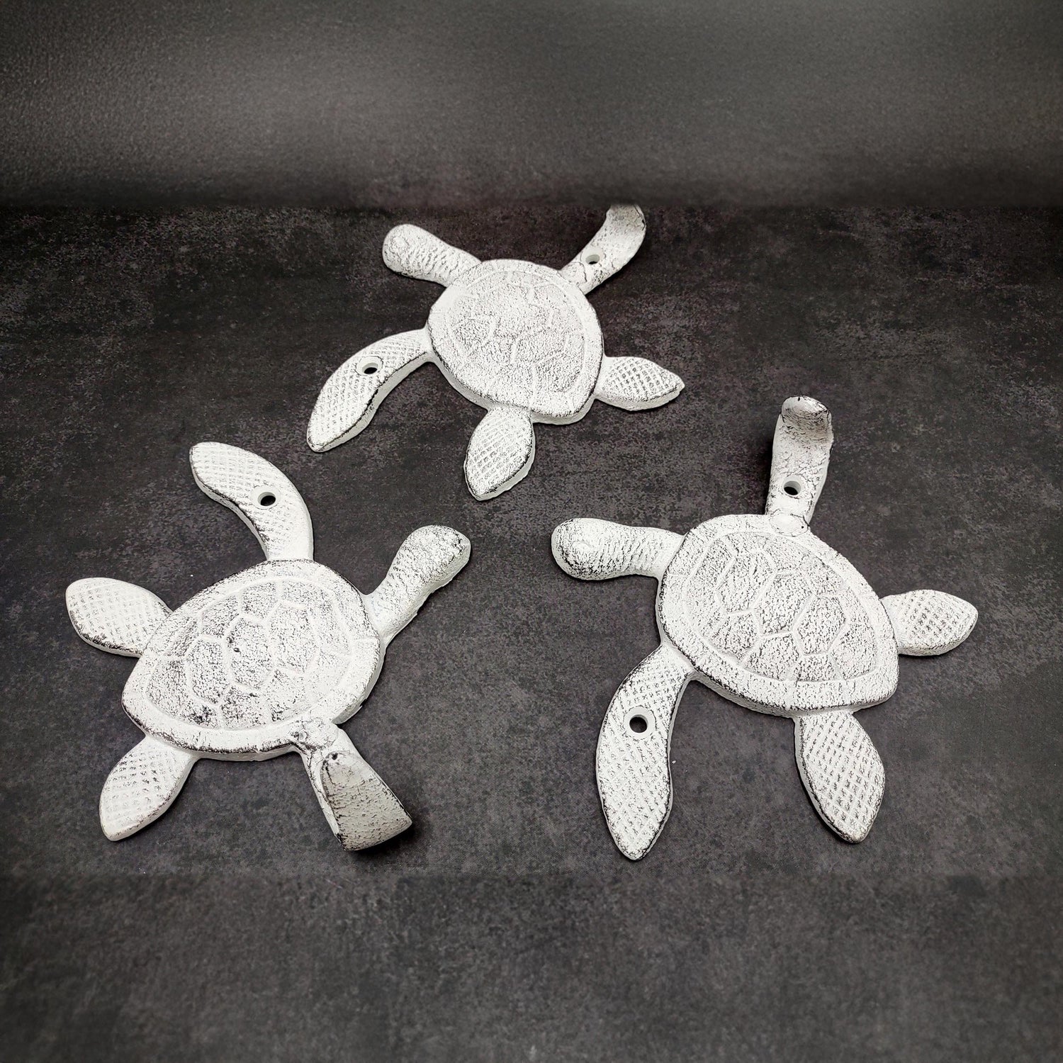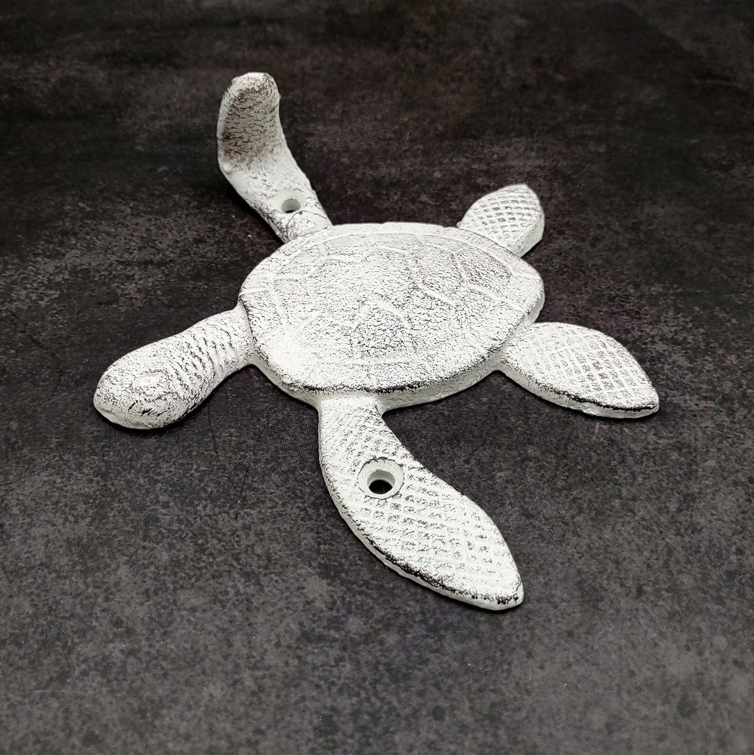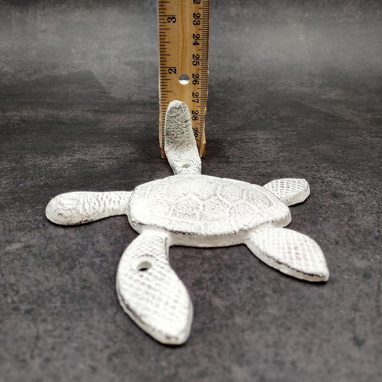 Cast Iron Antique White Sea Turtle Wall Hook (1 cast iron hook approx. 6+ inches) Functional Sea Turtle Wall Hanger for coastal home decor! is backordered and will ship as soon as it is back in stock.
