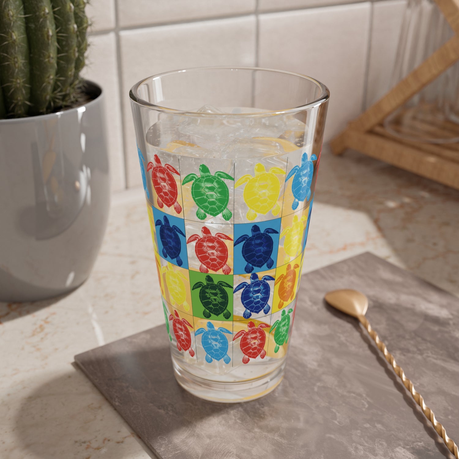 Colorful Pop Art Sea Turtle Pattern Design 16oz Drinkware, Fun Glassware, Great For Sea Turtle Fans.