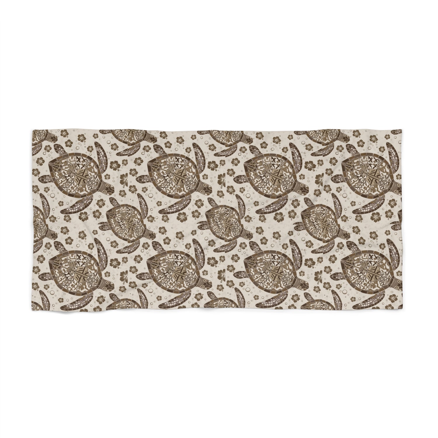 Colorful Brown Boho Art Sea Turtle Beach Towel