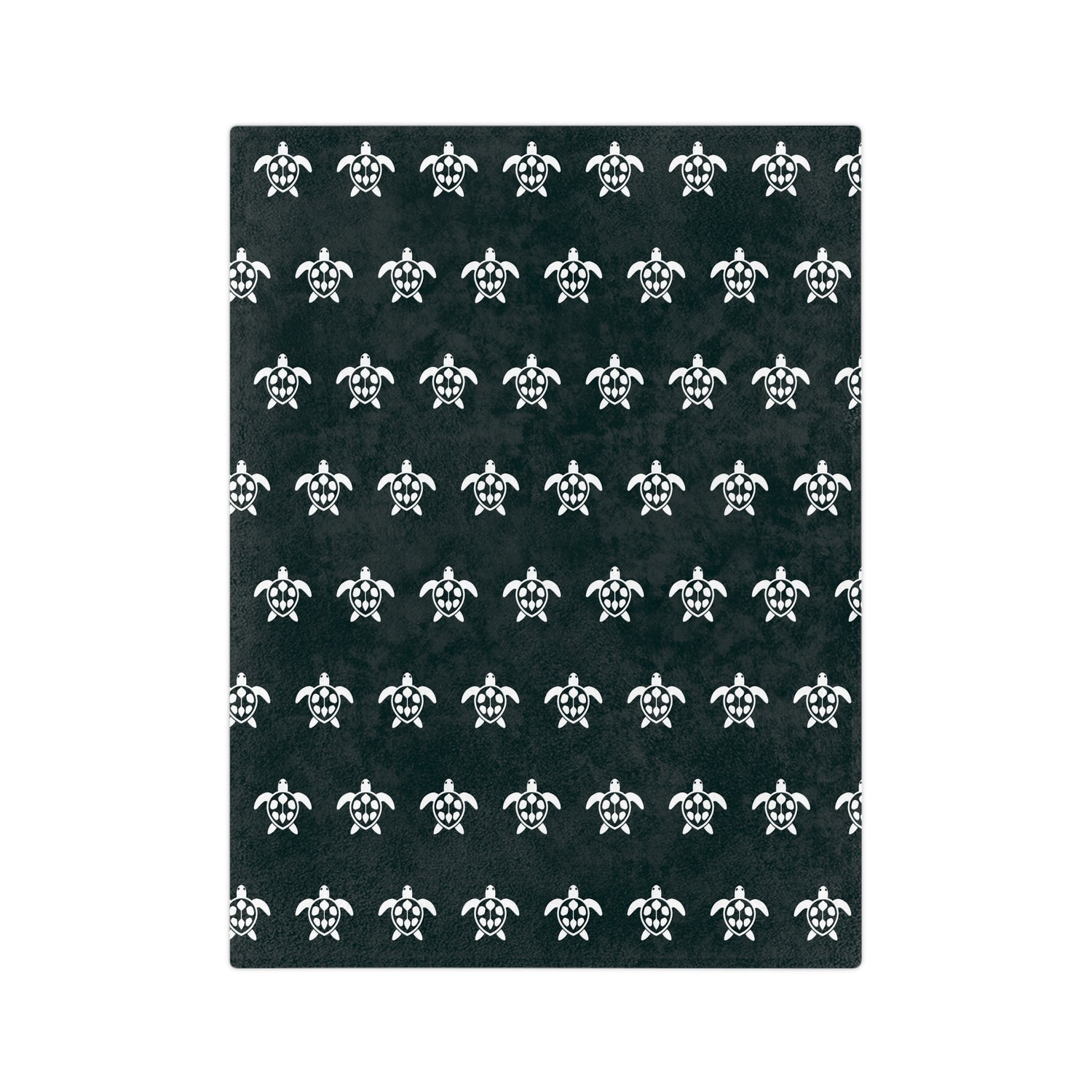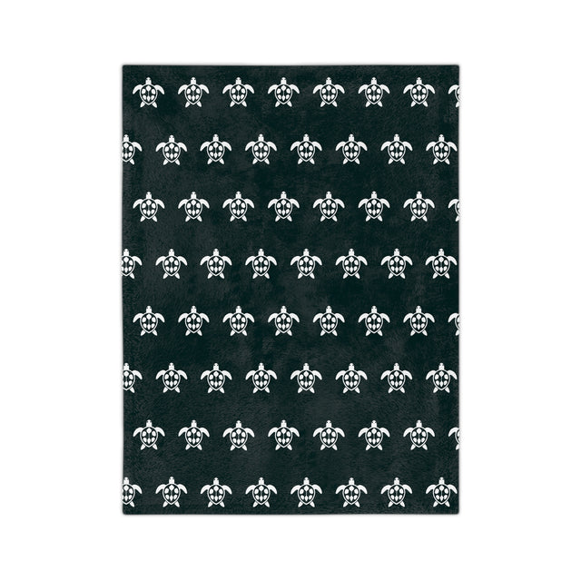 Dark Blue and White Sea Turtle Pattern -Themed Velveteen Microfiber Blanket - 3 Sizes