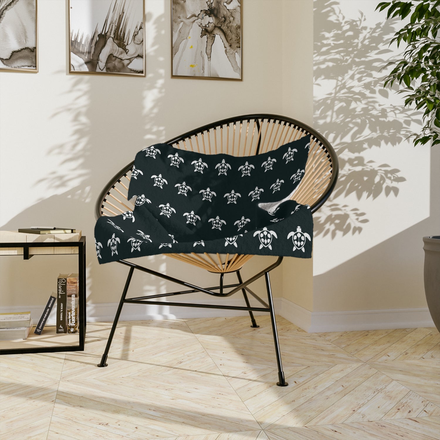 Dark Blue and White Sea Turtle Pattern-Themed Velveteen Microfiber Blanket - 3 Sizes