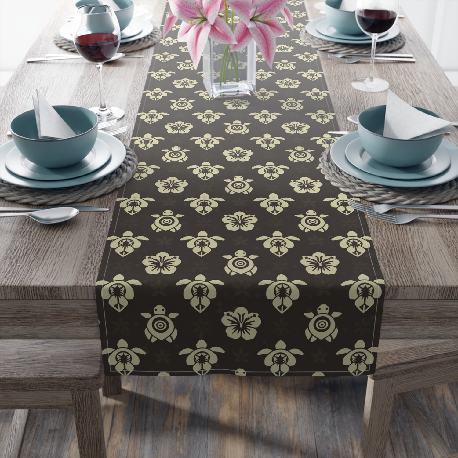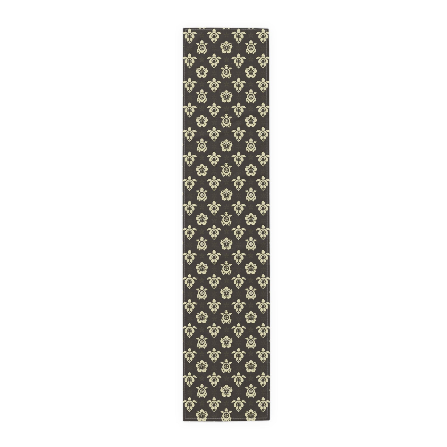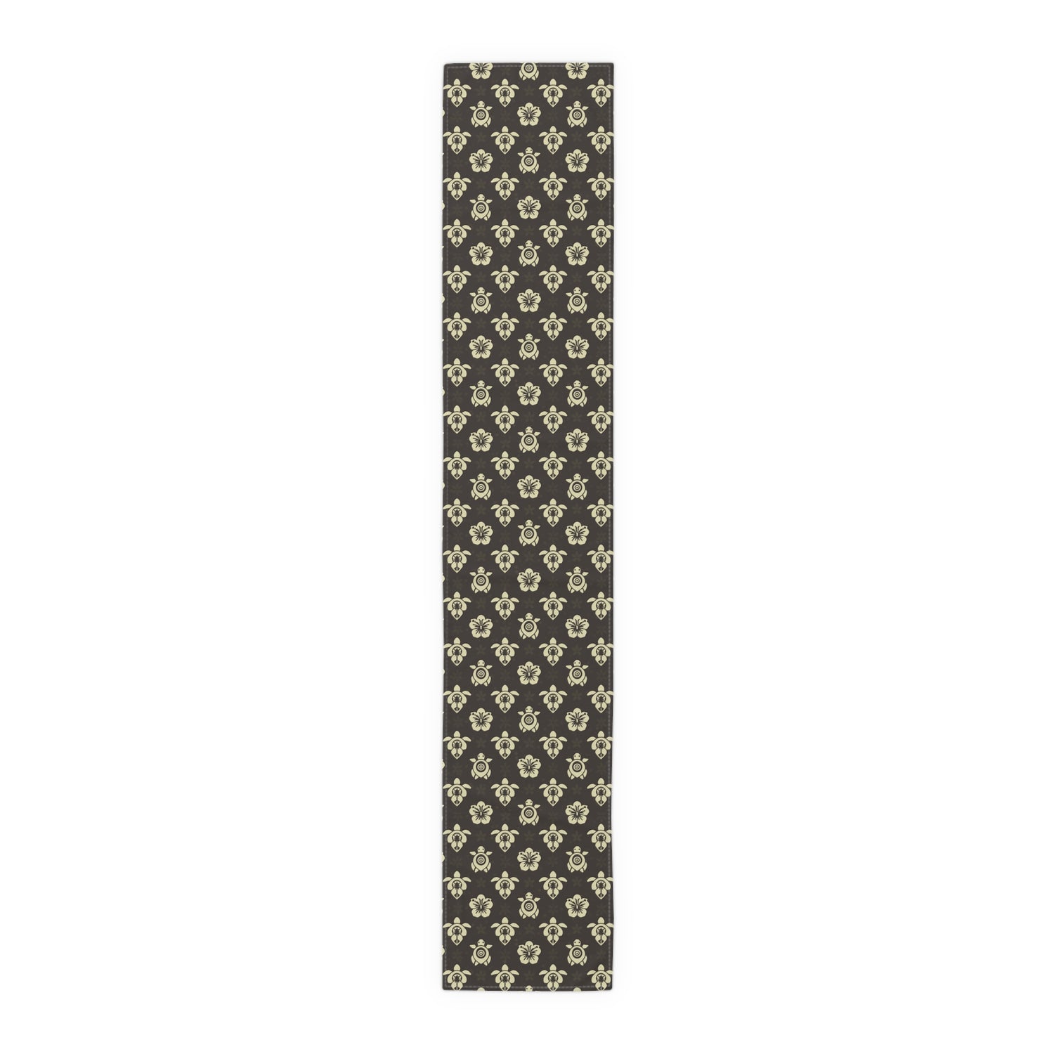 Dark Brown Sea Turtle and Floral Print Table Runner - 16" × 72" / Cotton Twill is backordered and will ship as soon as it is back in stock.