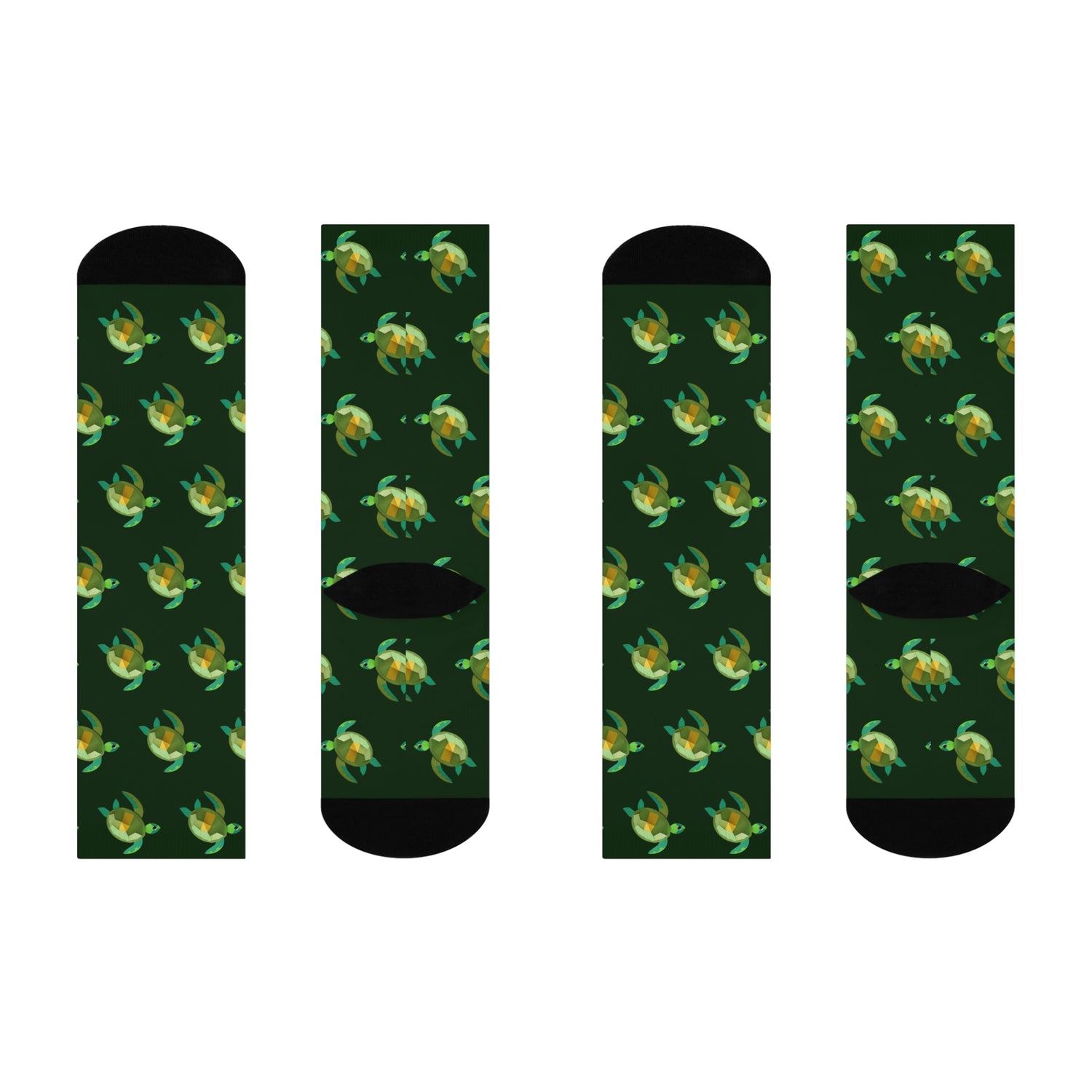 Dark Green Geopattern Sea Turtle Cushioned Crew Socks