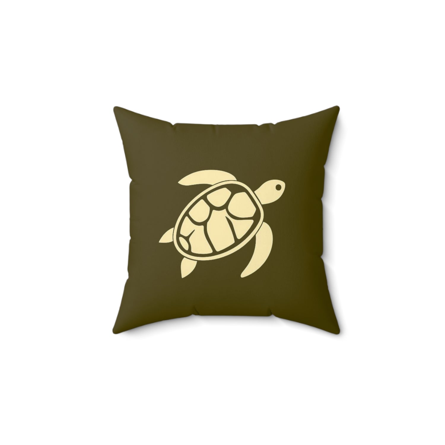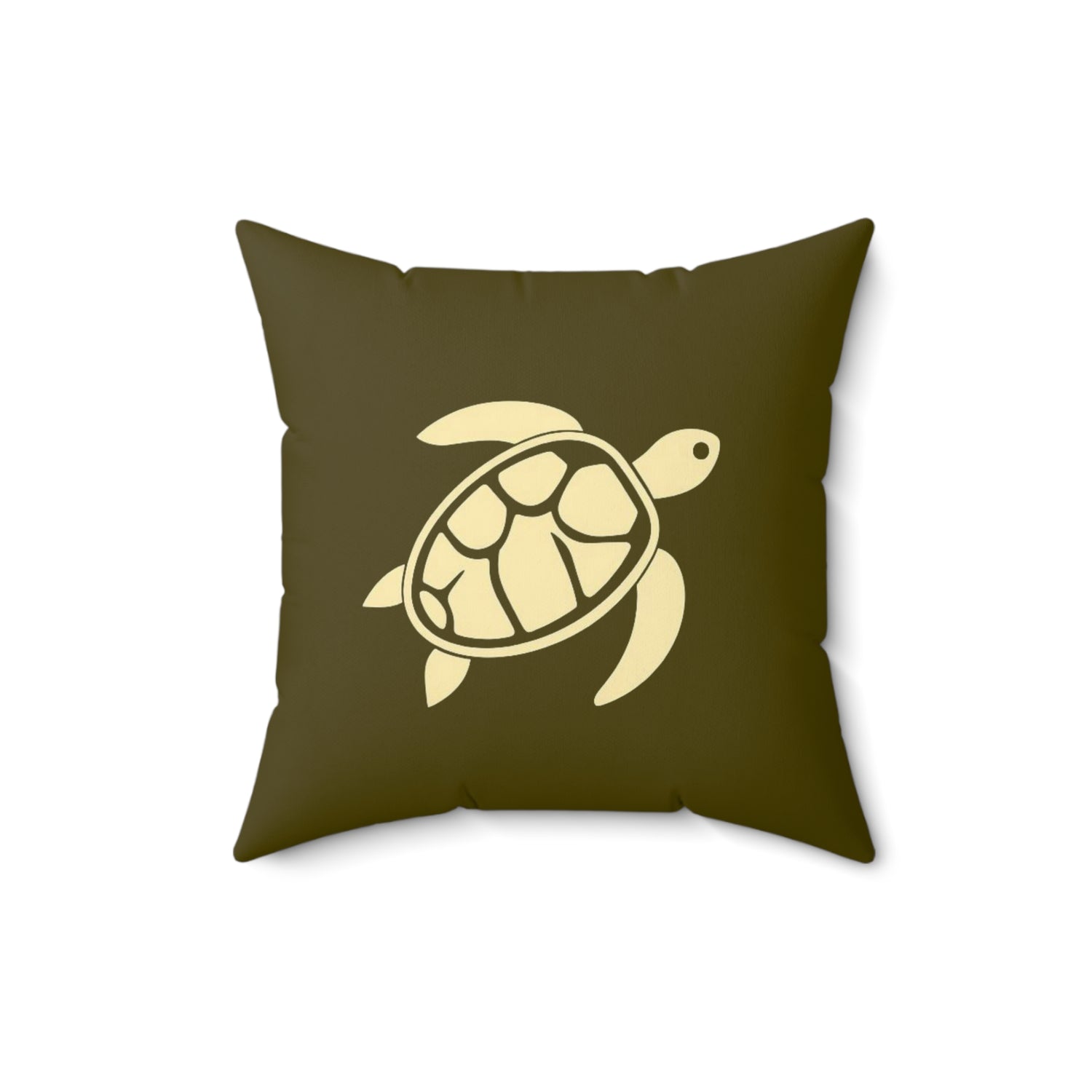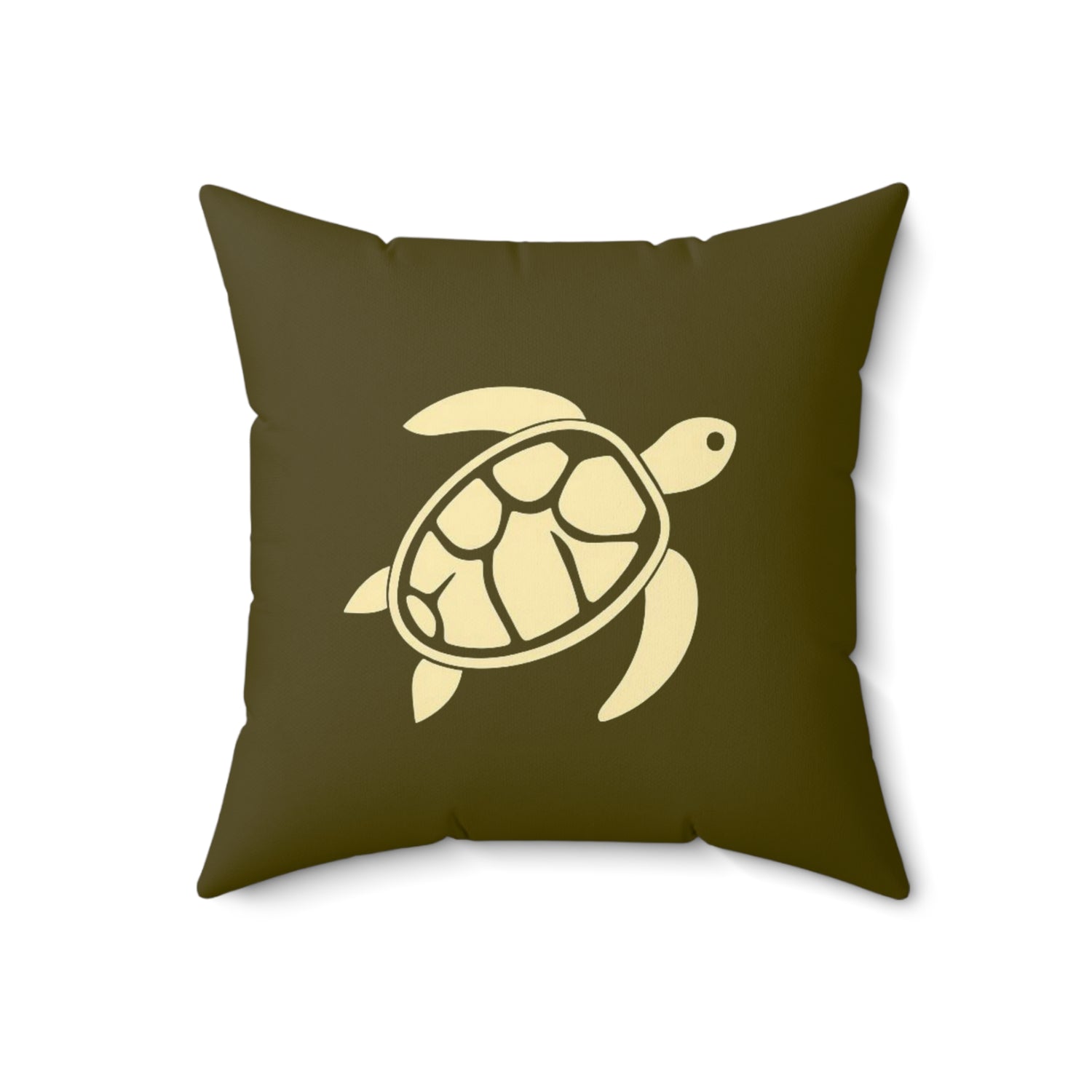 Dark Moss Green Sea Turtle Pillow, Faux Suede Pillow - 4 sizes - 14" × 14" is backordered and will ship as soon as it is back in stock.