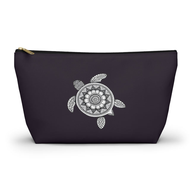 Dark Purple Mandala Sea Turtle Print Accessory Pouch, Eco-Friendly Makeup Bag, Travel Organizer, Gift for Ocean Lovers, Cute Turtle Cosmetic Pouch