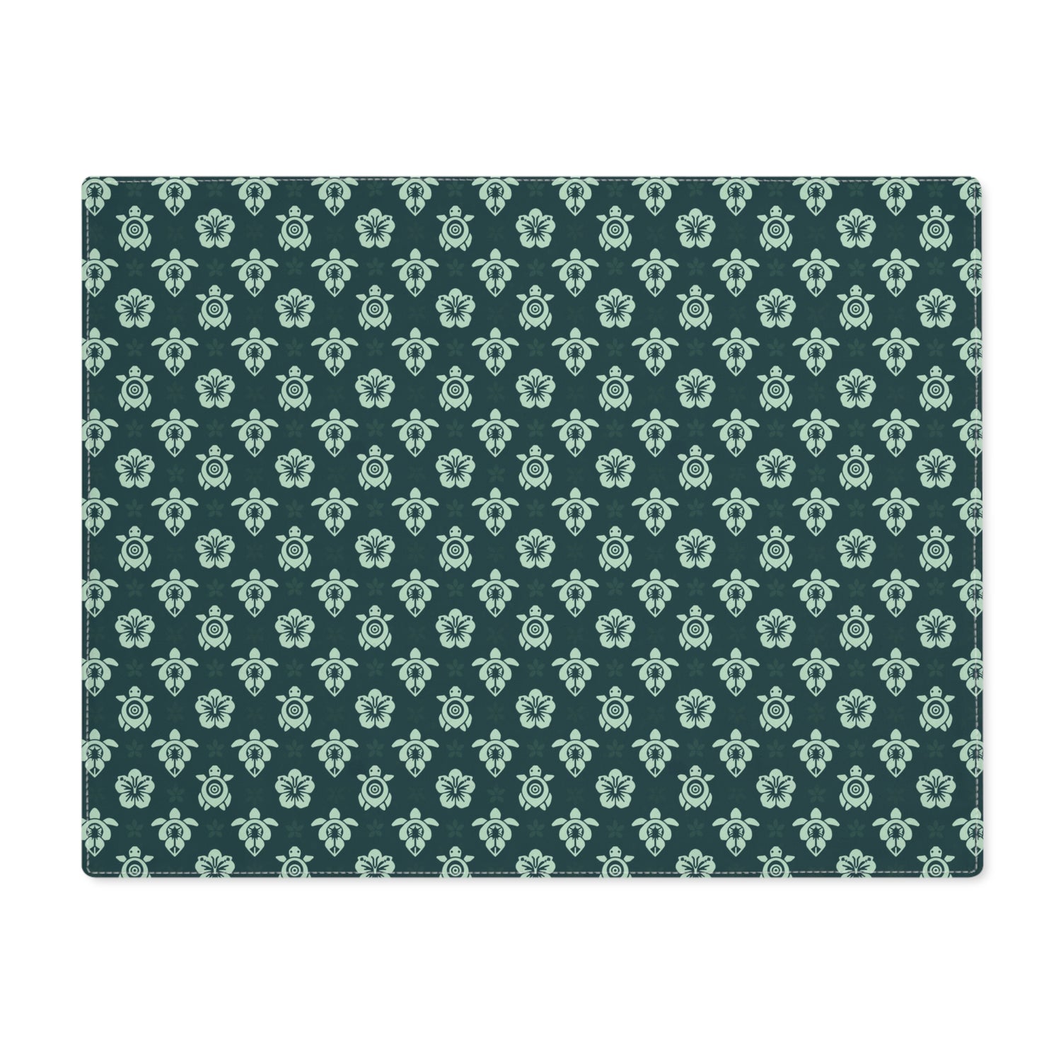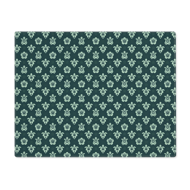Dark Teal Sea Turtle and Floral Pattern Placemat