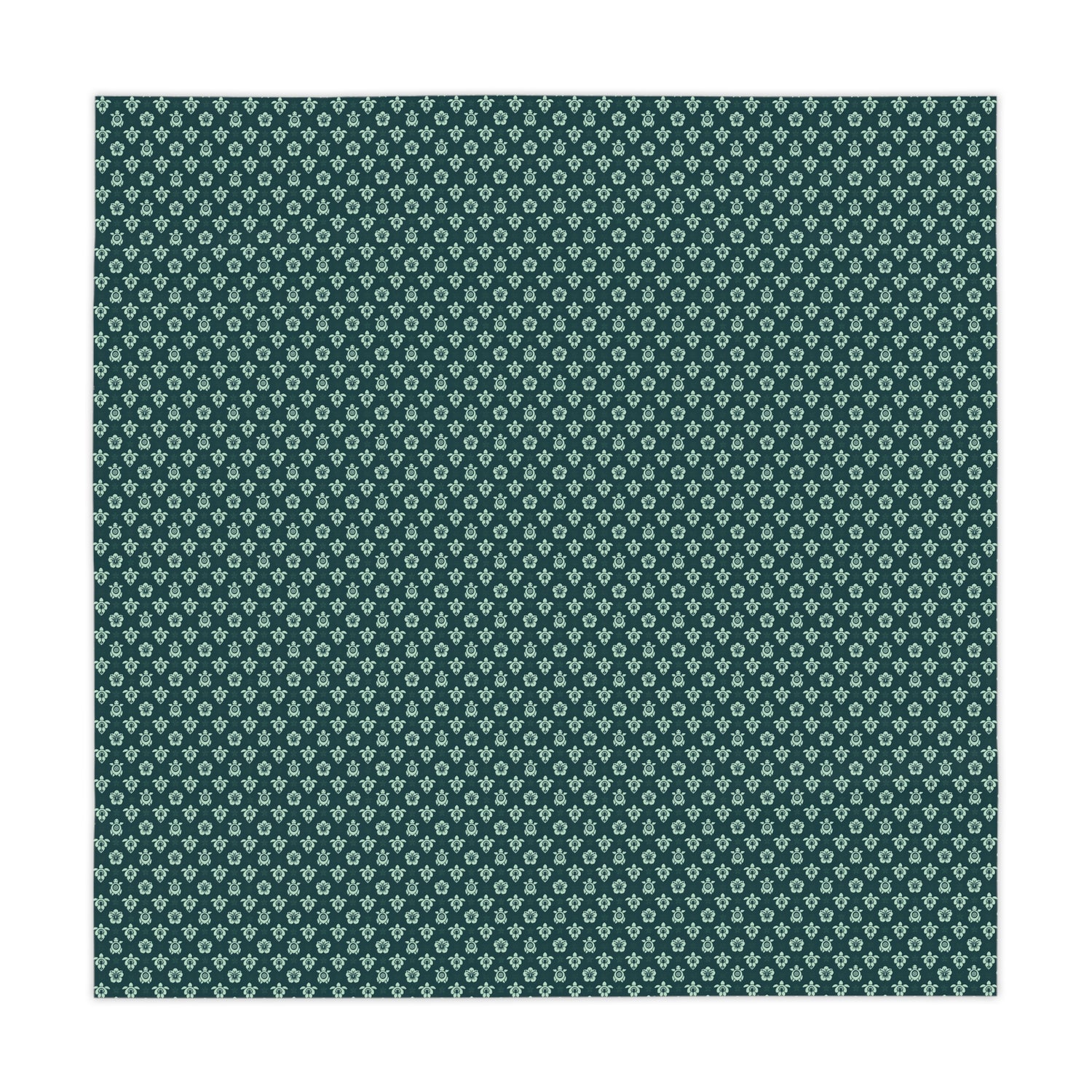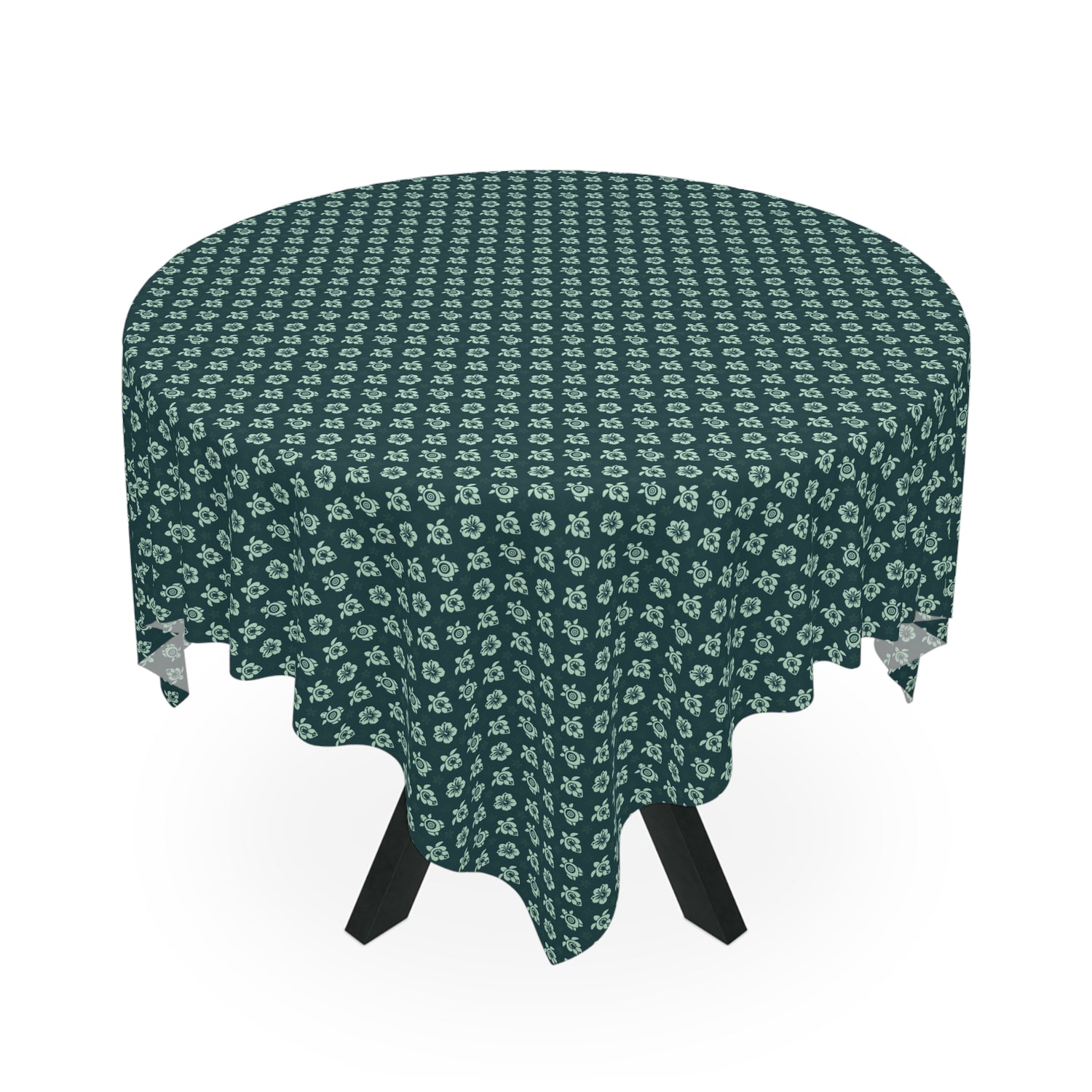 Dark Teal Sea Turtle and Floral Print Tablecloth