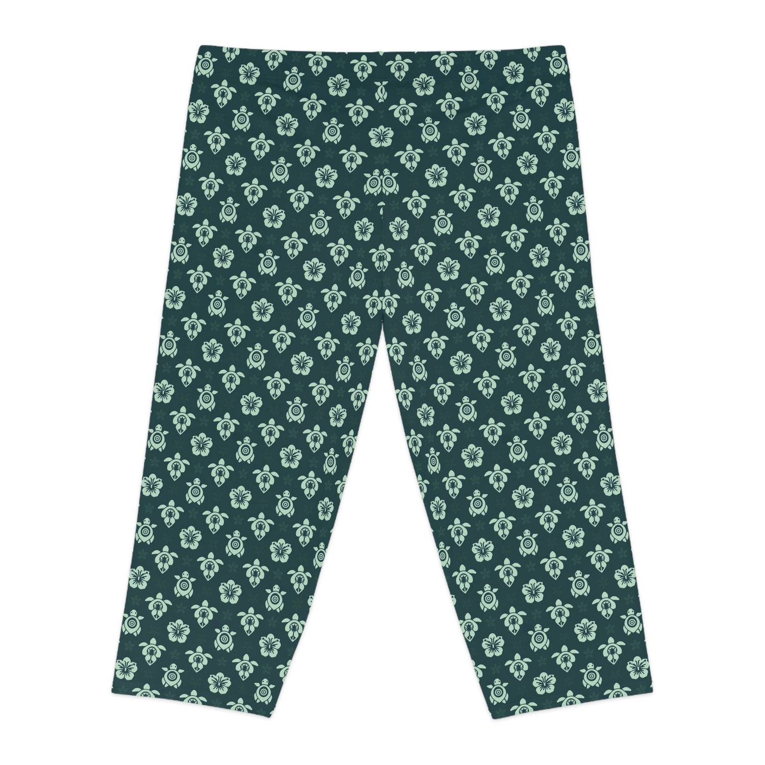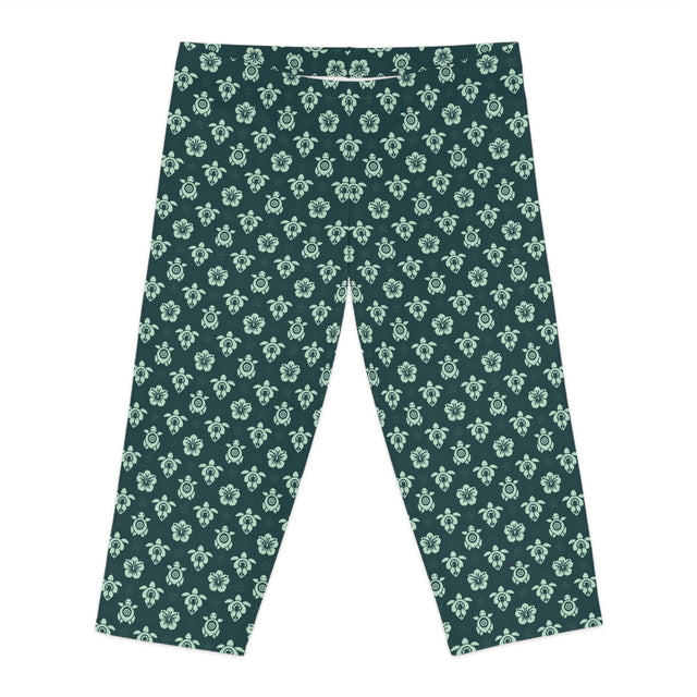 Dark Teal Sea Turtle Capri Leggings — Teal Green All-Over Print
