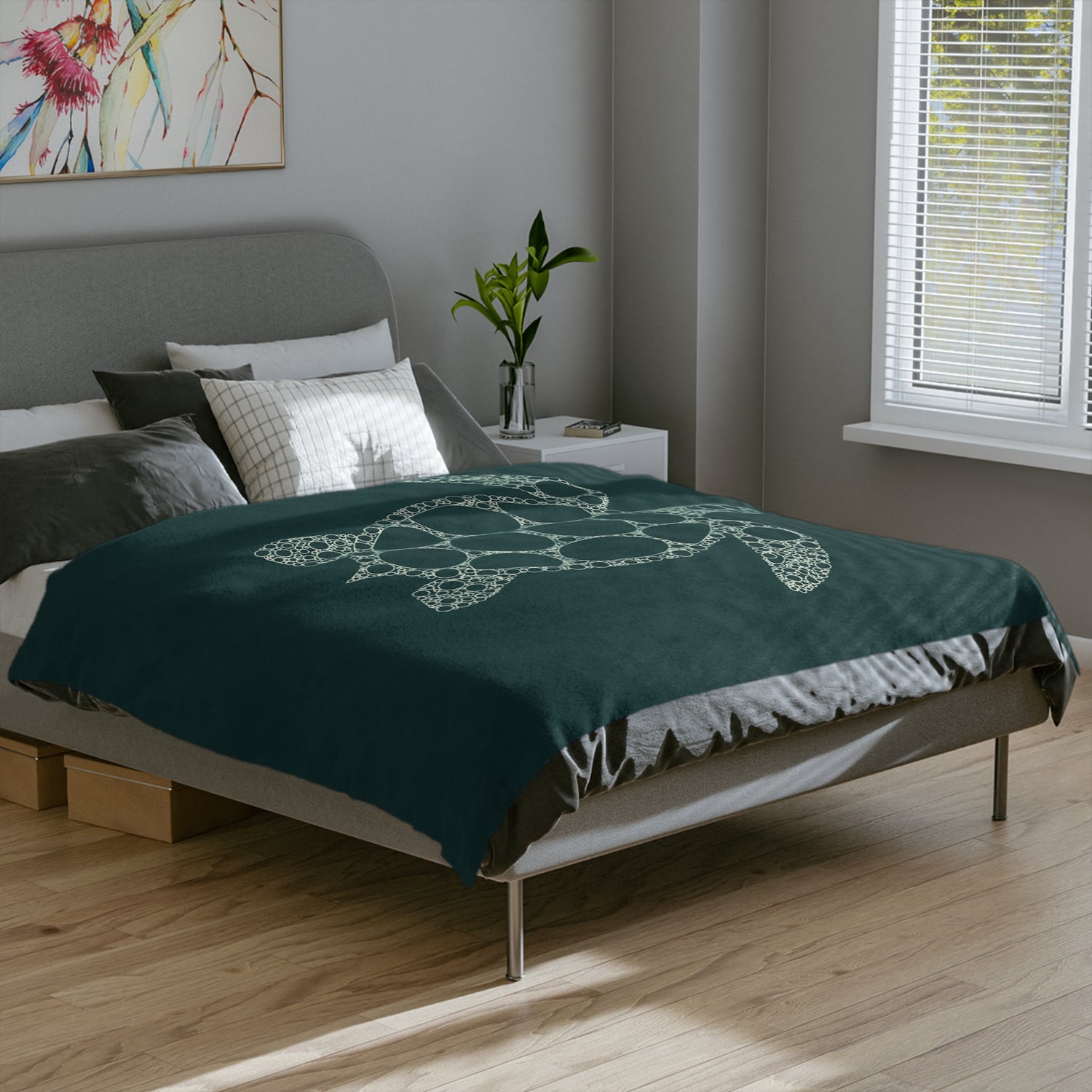 Dark Teal Sea Turtle-Themed Velveteen Microfiber Blanket - 3 Sizes