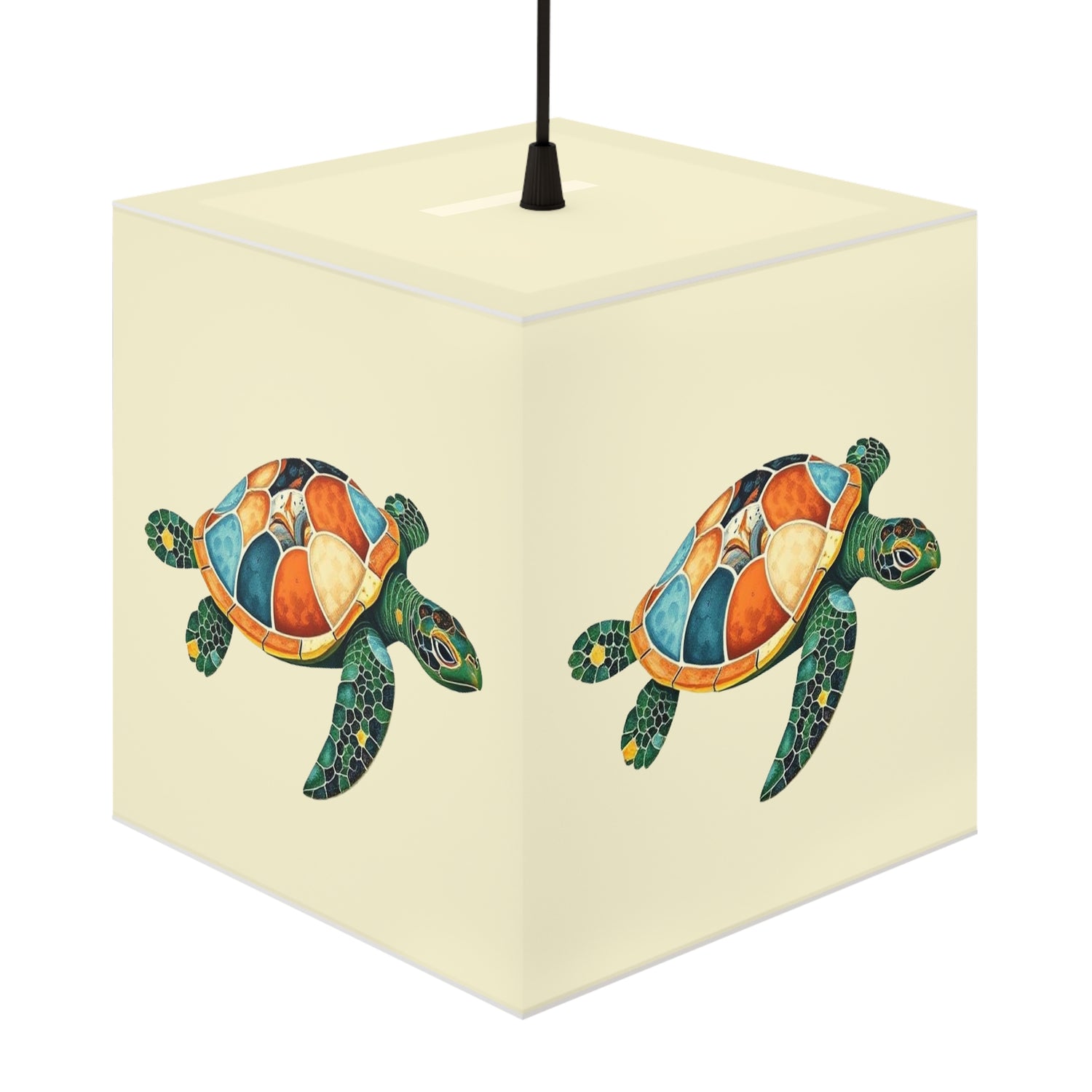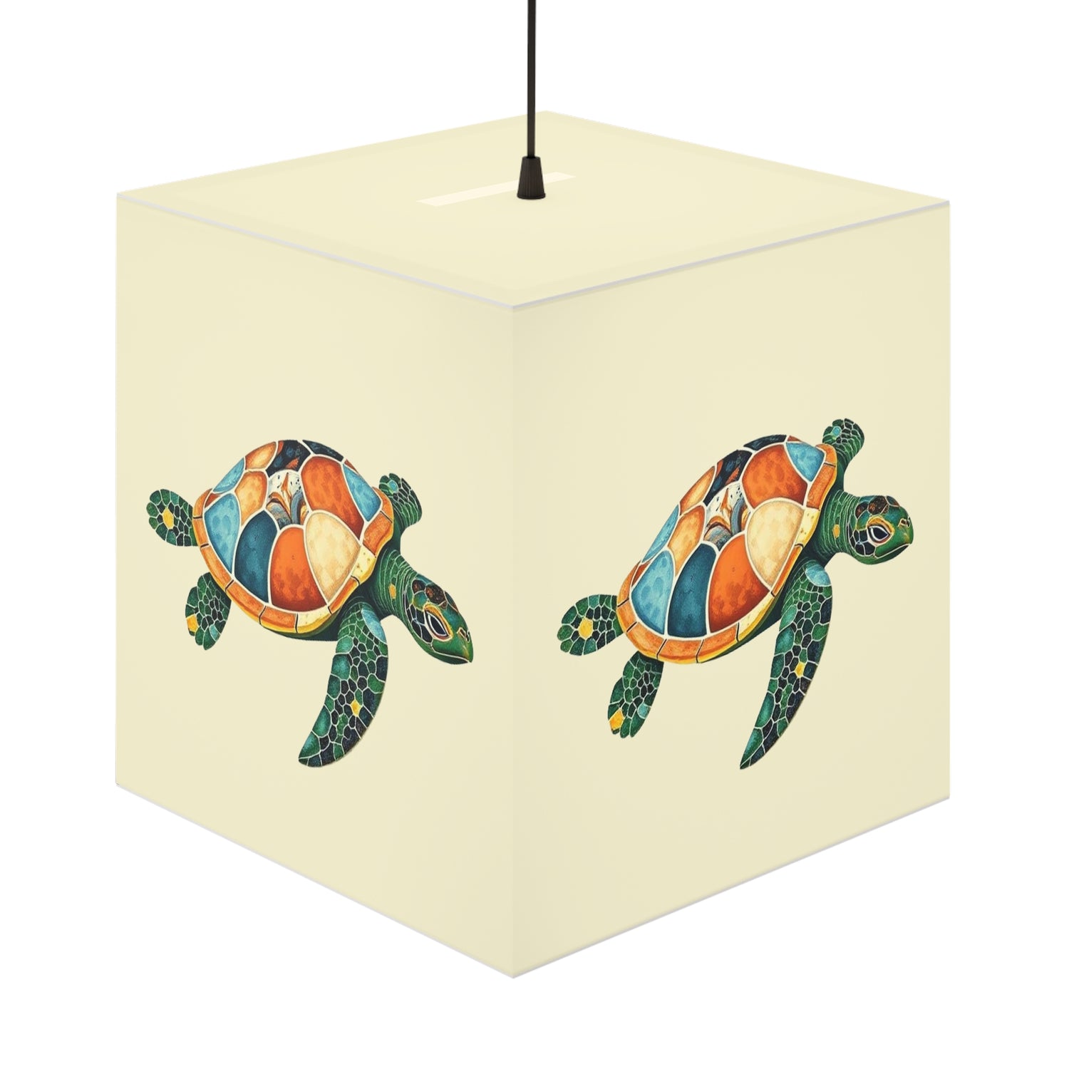 Green Collage Sea Turtle Geometric Light Cube Lamp - 7.7" × 7.6" × 7.6" / Pendant (No Plug) / Not included is backordered and will ship as soon as it is back in stock.