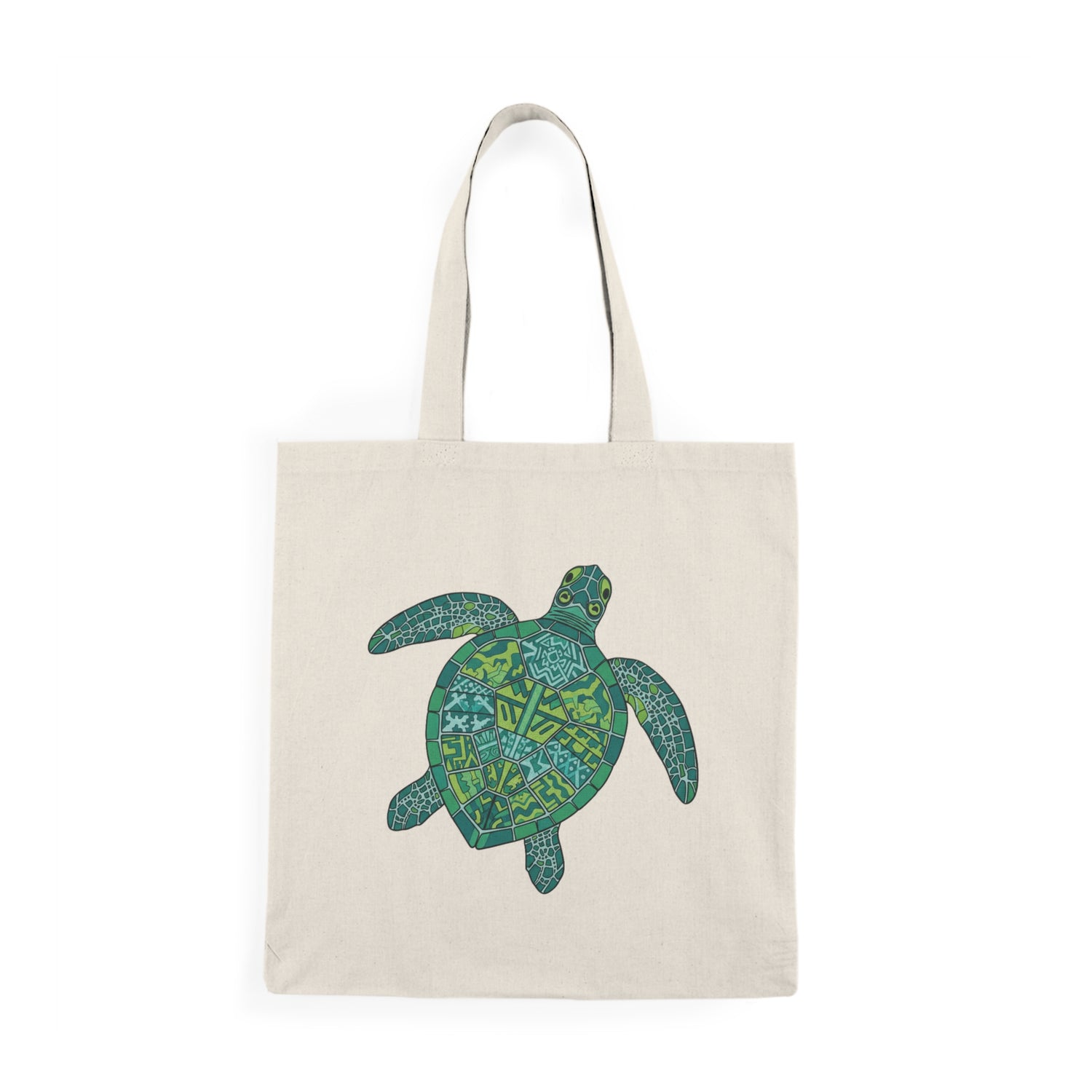 Green Tropical Sea Turtle Eco-Friendly Cotton Tote Bag