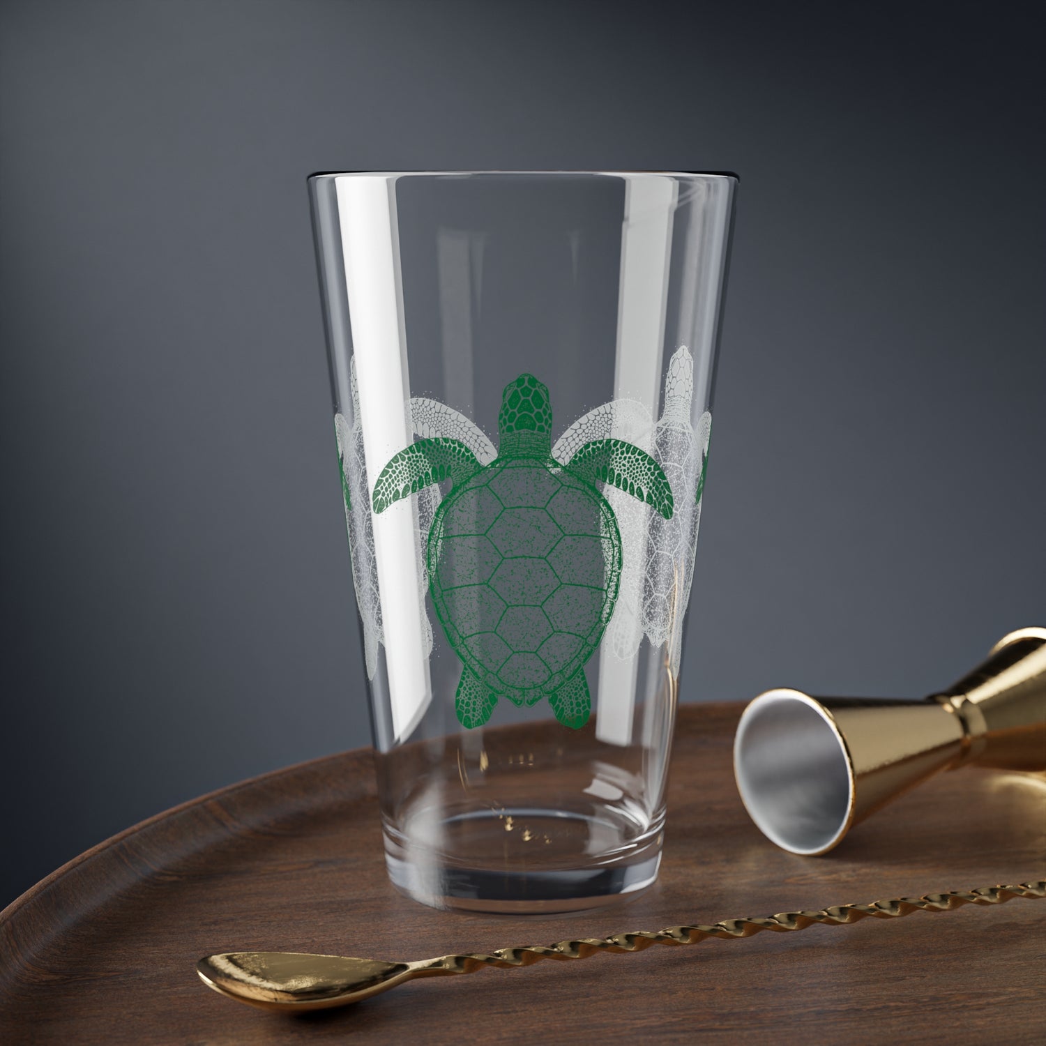 Intricate Green Sea Turtle 16oz Drinkware, Fun Glassware, Great For Sea Turtle Fans.