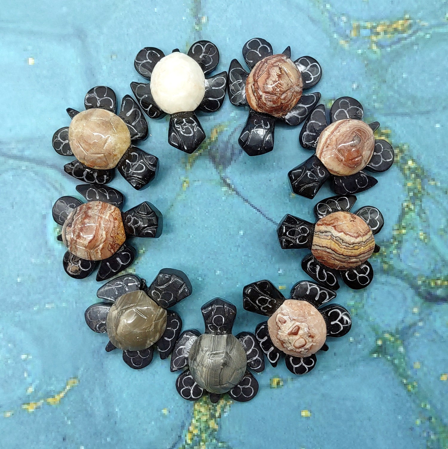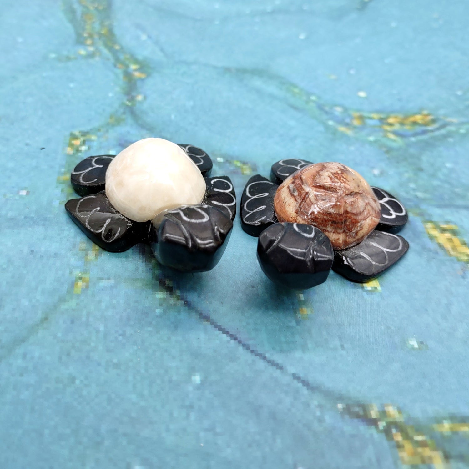 Natural Marble Stone Black Sea Turtles (set of 2 stone figure approx. 2+ inches) Carved Marble Turtle Figurines for coastal home shelf decor!