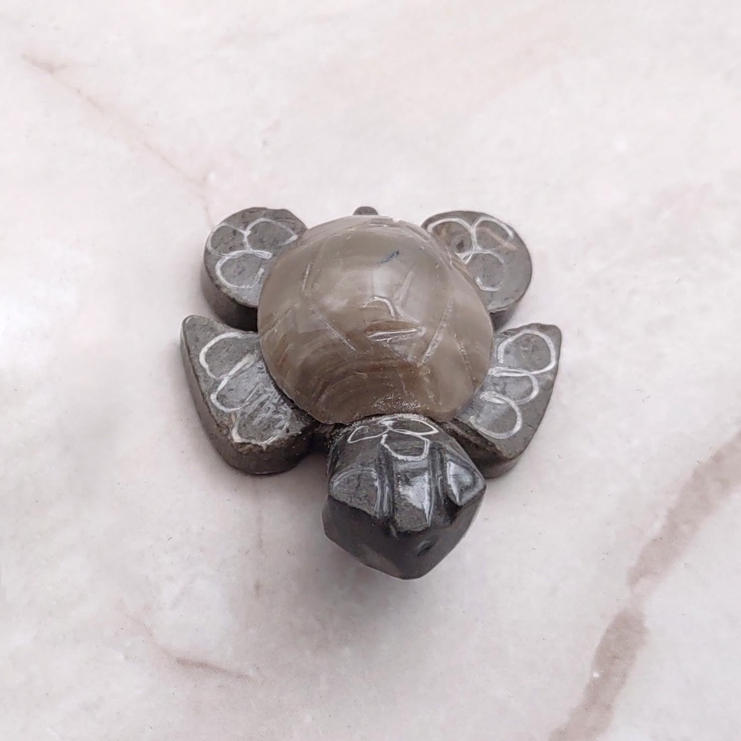 Natural Marble Stone Grey Sea Turtle (1 stone figure approx. 2+ inches) Carved Marble Turtle Figurine for coastal home décor & display!